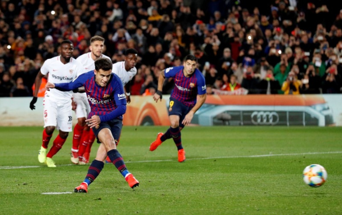 Soccer Football - Copa del Rey - Quarter-Final - Second Leg - FC Barcelona v Sevilla - Camp Nou, Barcelona, Spain - January 30, 2019 Barcelona's Philippe Coutinho scores their first goal from the penalty spot REUTERS/Albert Gea