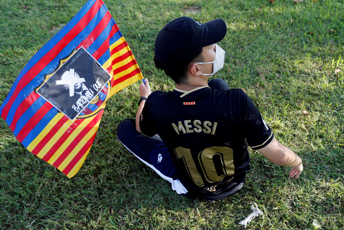 "We love you, Messi stay, Messi stay!" and "Bartomeu resign!" chanted several hundred fans outside Barcelona's Camp Nou stadium on Tuesday night.