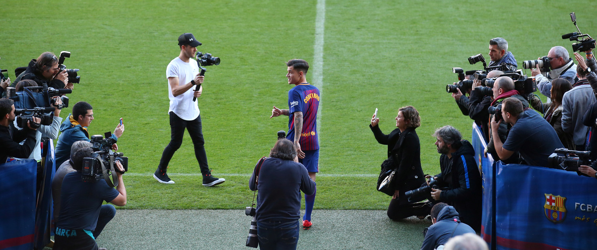 Soccer Football - FC Barcelona present new signing Philippe Coutinho - Camp Nou, Barcelona, Spain - January 8, 2018 FC Barcelona's new signing Philippe Coutinho is photographed as he walks on to the pitch REUTERS/Albert GeaSoccer Football - FC Barcelona present new signing Philippe Coutinho - Camp Nou, Barcelona, Spain - January 8, 2018 FC Barcelona's new signing Philippe Coutinho waves on the pitch REUTERS/Albert GeaSoccer Football - FC Barcelona present new signing Philippe Coutinho - Camp Nou, Barcelona, Spain - January 8, 2018 FC Barcelona's new signing Philippe Coutinho is photographed as he poses on the pitch REUTERS/Albert GeaSoccer Football - FC Barcelona present new signing Philippe Coutinho - Camp Nou, Barcelona, Spain - January 8, 2018 FC Barcelona's new signing Philippe Coutinho kicks a ball on the pitch REUTERS/Albert GeaSoccer Football - FC Barcelona present new signing Philippe Coutinho - Camp Nou, Barcelona, Spain - January 8, 2018 FC Barcelona's new signing Philippe Coutinho waves REUTERS/Albert Gea