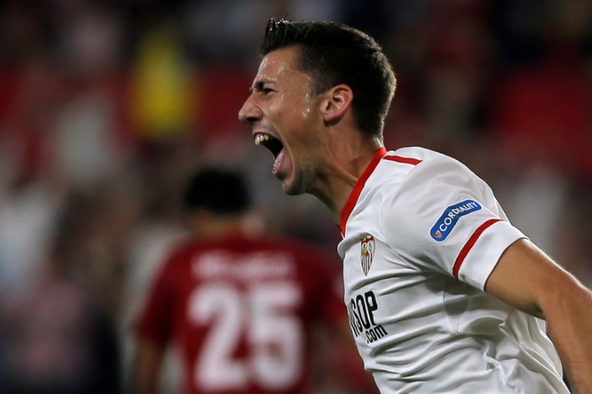 FILE PHOTO: Soccer Football - Champions League - Sevilla vs Spartak Moscow - Ramon Sanchez Pizjuan Stadium, Seville, Spain - November 1, 2017 Sevilla’s Clement Lenglet celebrates scoring their first goal REUTERS/Jon Nazca/File Photo