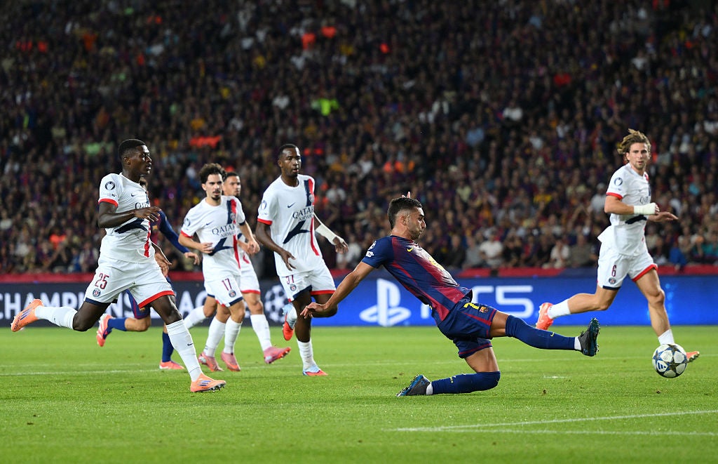 The second half began with both sides equal but it was PSG who applied the early pressure, with Bradley Barcola going close before a heroic block from Achraf Hakimi stopped a certain Dani Olmo goal with 20-odd minutes left.