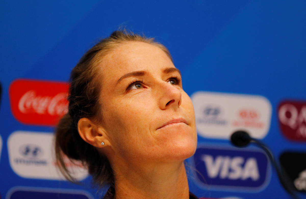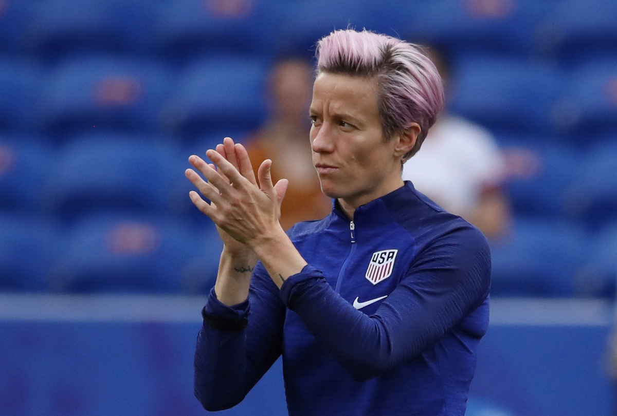 The 33-year-old, who was last week criticised by President Donald Trump for saying she would not visit the White House if the U.S. won the tournament, did not join in the warm-up before the game. She stood on the sidelines with her arms folded.