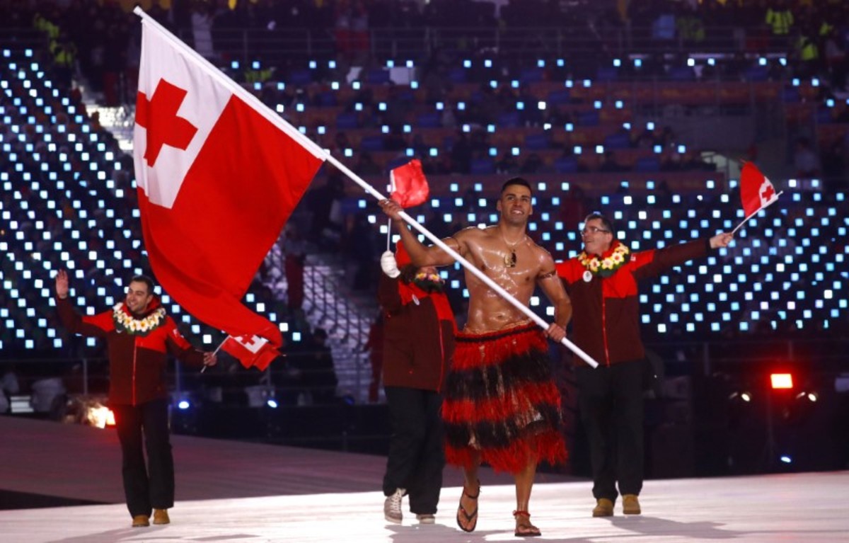 Pyeongchang 2018 Winter Olympics – Opening ceremony – Pyeongchang Olympic Stadium - Pyeongchang, South Korea – February 9, 2018 - Pita Taufatofua of Tonga carries the national flag. REUTERS/Stefano RellandiniPyeongchang 2018 Winter Olympics – Opening ceremony – Pyeongchang Olympic Stadium - Pyeongchang, South Korea – February 9, 2018 - Pita Taufatofua of Tonga carries the national flag. REUTERS/Kai PfaffenbachPyeongchang 2018 Winter Olympics – Opening ceremony – Pyeongchang Olympic Stadium - Pyeongchang, South Korea – February 9, 2018 - Pita Taufatofua of Tonga carries the national flag. REUTERS/Carlos Barria
