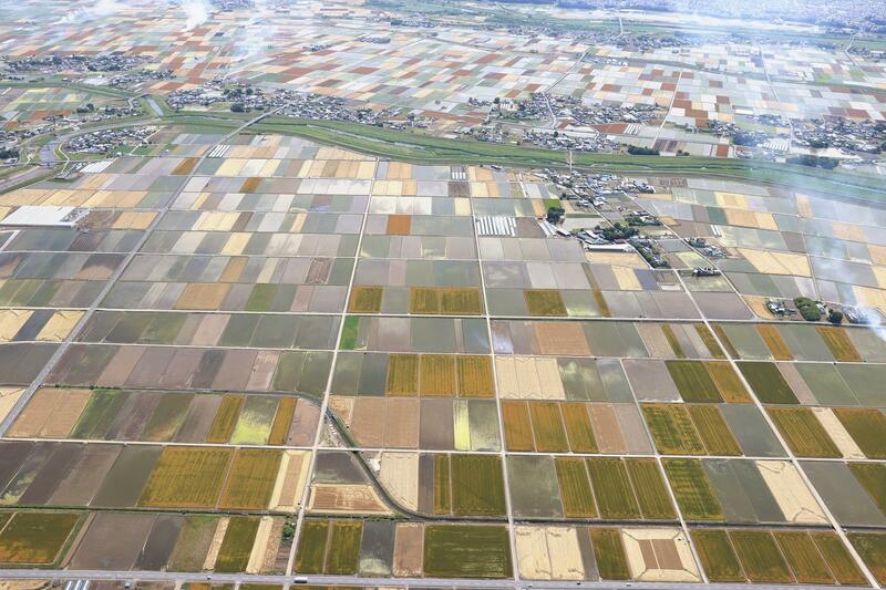Farmers have begun cropping the long stalks in their fields, which seen from above create a patchwork of golden barley that pops in juxtaposition with the surrounding rice paddies.