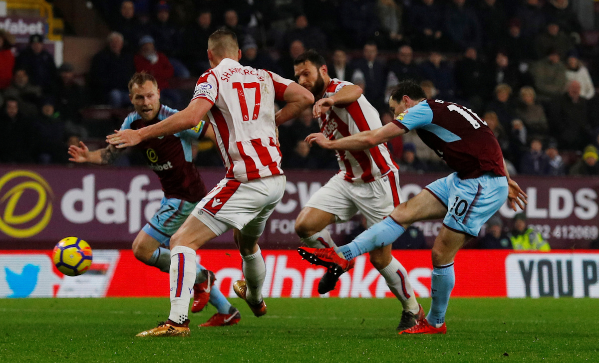 There was little to warm the home crowd on a wet and windy night but those who braved the wintry weather were celebrating in the 89th minute as Barnes seized on a ricochet off team mate Scott Arfield and thumped a shot past Stoke goalkeeper Jack Butland.