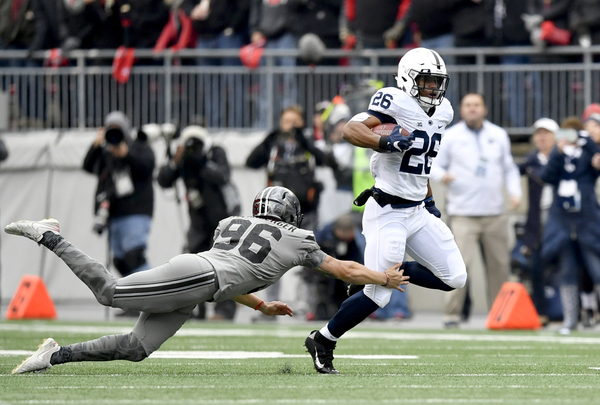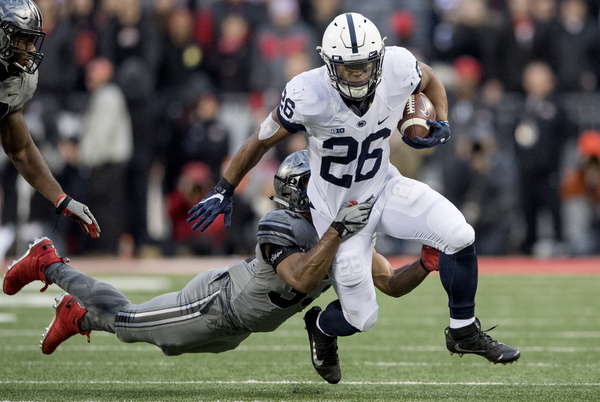 The Buckeyes scored once more before the half, a 2-yard run by Mike Weber, and it was 28-17 at the half. After an Ohio State field goal cut the lead to eight, Penn State scored what would be its final touchdown on a 37-yard pass from McSorley to DeAndre Thompkins, who was ruled to have caught the pass before hitting the ground and having the ball stolen by defensive back Denzel Ward.