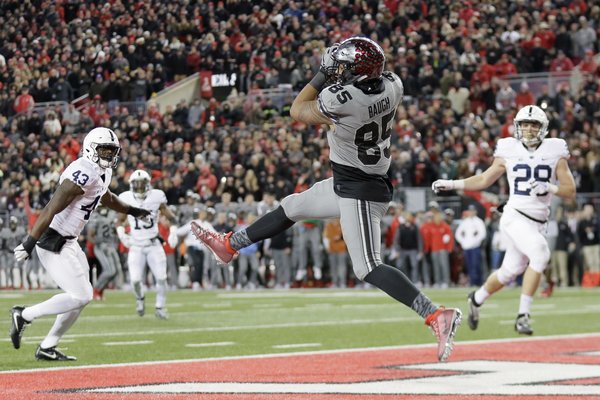 Penn State went 81 yards in seven plays, getting a pair of first downs on McSorley completions to tight end Mike Gesicki. Then from the Ohio State 36, Barkley took a handoff to the left, hit the edge and tiptoed down the left sideline for the touchdown, making it 21-3.