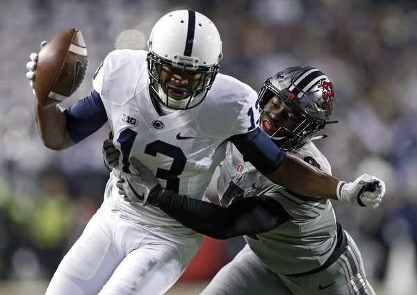 Penn State then went three plays and out on its next drive, and Ohio State took over at its own 42. Barrett completed four consecutive passes on the march, with the final one being the TD strike to Baugh. The Buckeyes missed a two-point conversion for the second time in the game, and the Nittany Lions still had enough time to get into position for a field goal.