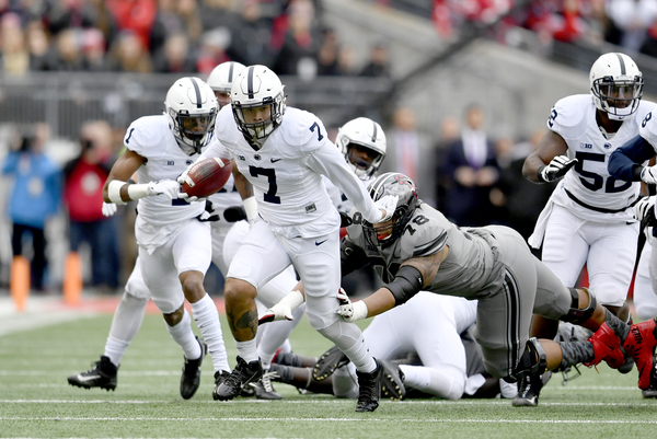 The Nittany Lions put up another touchdown right away when Parris Campbell fumbled after a reception on Ohio State's third offensive play. Linebacker Koa Farmer picked up the loose ball and returned it 26 yards to the Penn State 23. The Lions scored in five plays, with McSorley lofting a 13-yard TD pass to Hamilton in the back right corner of the end zone.