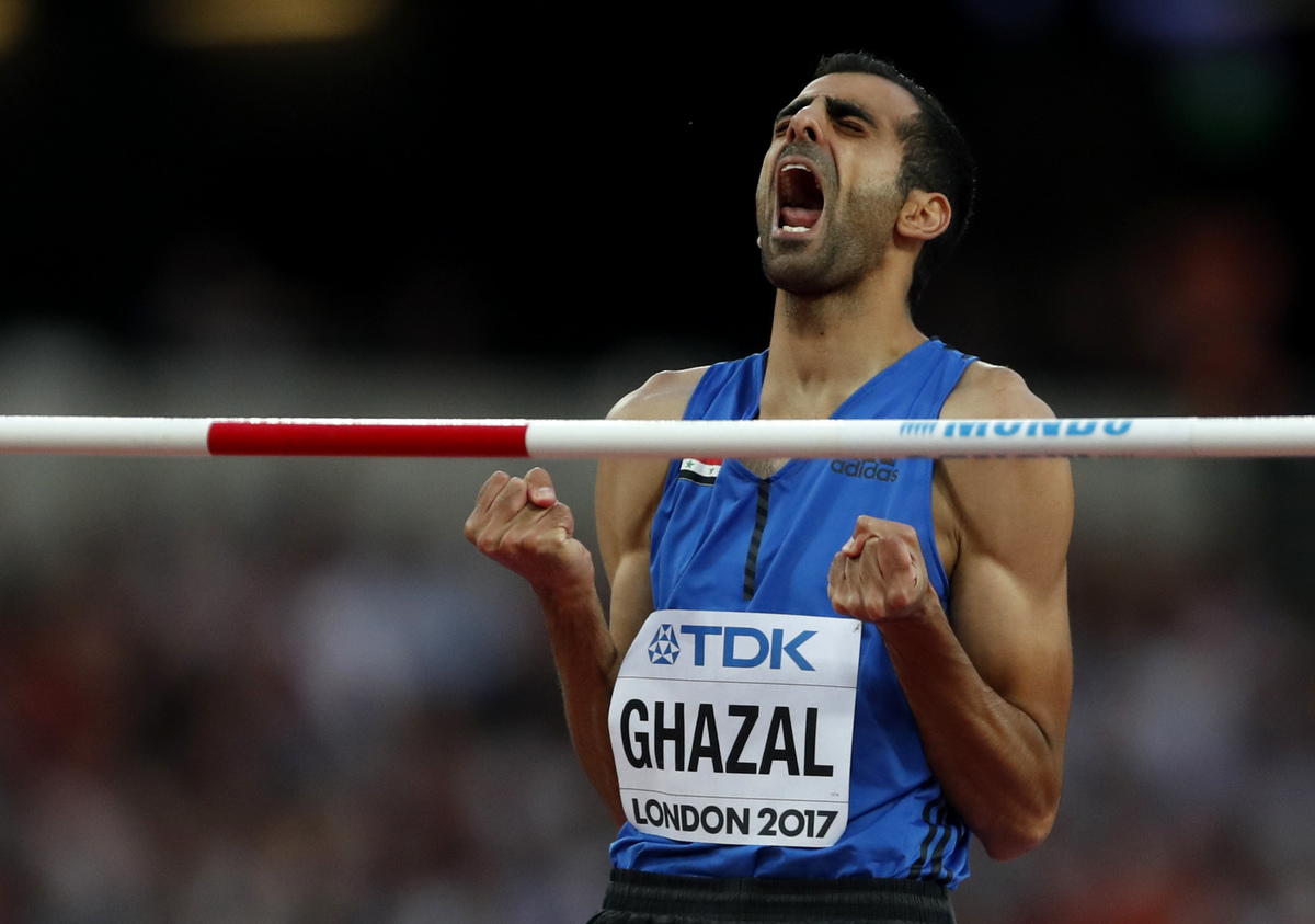 Russian Danil Lysenko, competing as a neutral athlete, took silver with 2.32m while Majd Eddin Ghazal of Syria had the best record of three men who cleared 2.29 to take bronze - his country's first world championship medal for a man.
