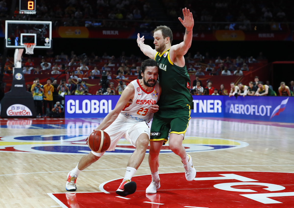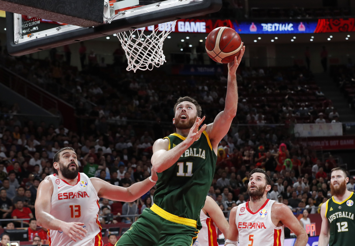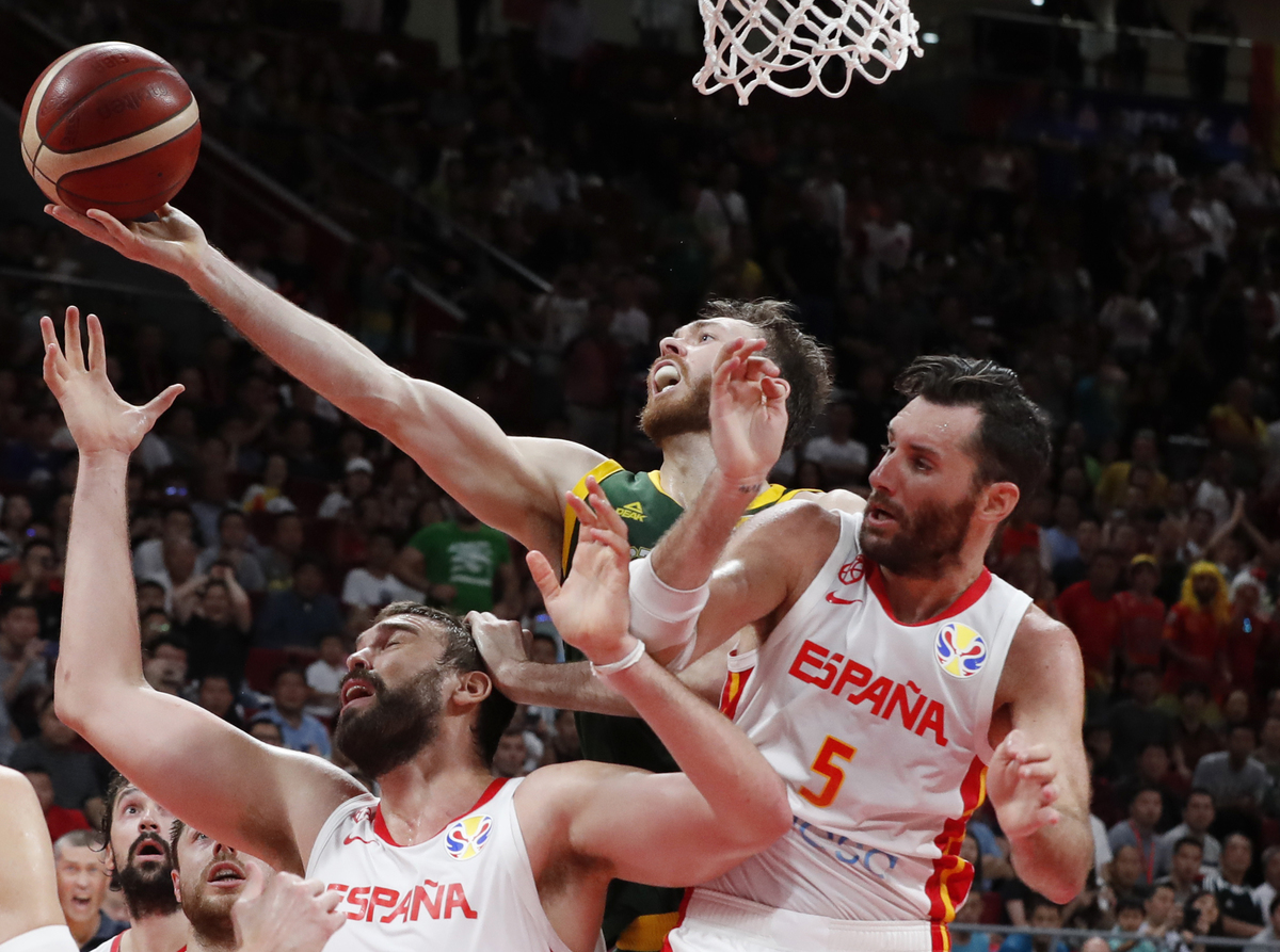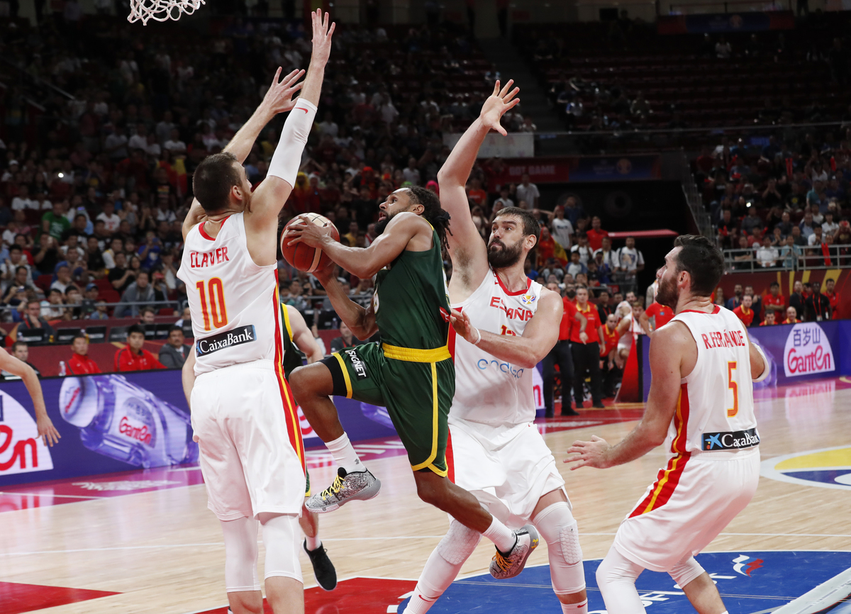 Basketball - FIBA World Cup - Semi Finals - Spain v Australia - Wukesong Sport Arena, Beijing, China - September 13, 2019 Spain's Ricky Rubio in action with Australia's Patty Mills and Matthew Dellavedova REUTERS/Thomas PeterBasketball - FIBA World Cup - Semi Finals - Spain v Australia - Wukesong Sport Arena, Beijing, China - September 13, 2019 Australia's Nic Kay in action with Spain's Marc Gasol and Rudy Fernandez REUTERS/Kim Kyung-HoonBasketball - FIBA World Cup - Semi Finals - Spain v Australia - Wukesong Sport Arena, Beijing, China - September 13, 2019 Australia's Patty Mills in action with Spain's Marc Gasol REUTERS/Thomas PeterBasketball - FIBA World Cup - Semi Finals - Spain v Australia - Wukesong Sport Arena, Beijing, China - September 13, 2019 Spain's Sergio Llull in action with Australia's Joe Ingles REUTERS/Thomas PeterBasketball - FIBA World Cup - Semi Finals - Spain v Australia - Wukesong Sport Arena, Beijing, China - September 13, 2019 Australia's Nic Kay and Andrew Bogut in action with Spain's Victor Claver and Marc Gasol REUTERS/Kim Kyung-HoonBasketball - FIBA World Cup - Semi Finals - Spain v Australia - Wukesong Sport Arena, Beijing, China - September 13, 2019 Australia's Mitch Creek in action with Spain's Juancho Hernangomez REUTERS/Kim Kyung-HoonBasketball - FIBA World Cup - Semi Finals - Spain v Australia - Wukesong Sport Arena, Beijing, China - September 13, 2019 Spain's Sergio Llull applauds fans after the match REUTERS/Thomas PeterBasketball - FIBA World Cup - Semi Finals - Spain v Australia - Wukesong Sport Arena, Beijing, China - September 13, 2019 Spain's Juancho Hernangomez and Sergio Llull celebrate victory after the match REUTERS/Jason LeeBasketball - FIBA World Cup - Semi Finals - Spain v Australia - Wukesong Sport Arena, Beijing, China - September 13, 2019 Spain's Victor Claver celebrates victory after the match REUTERS/Thomas PeterBasketball - FIBA World Cup - Semi Finals - Spain v Australia - Wukesong Sport Arena, Beijing, China - September 13, 2019 Australia's Joe Ingles, Nic Kay, David Barlow, Jock Landale and Patty Mills look dejected after the match REUTERS/Kim Kyung-Hoon