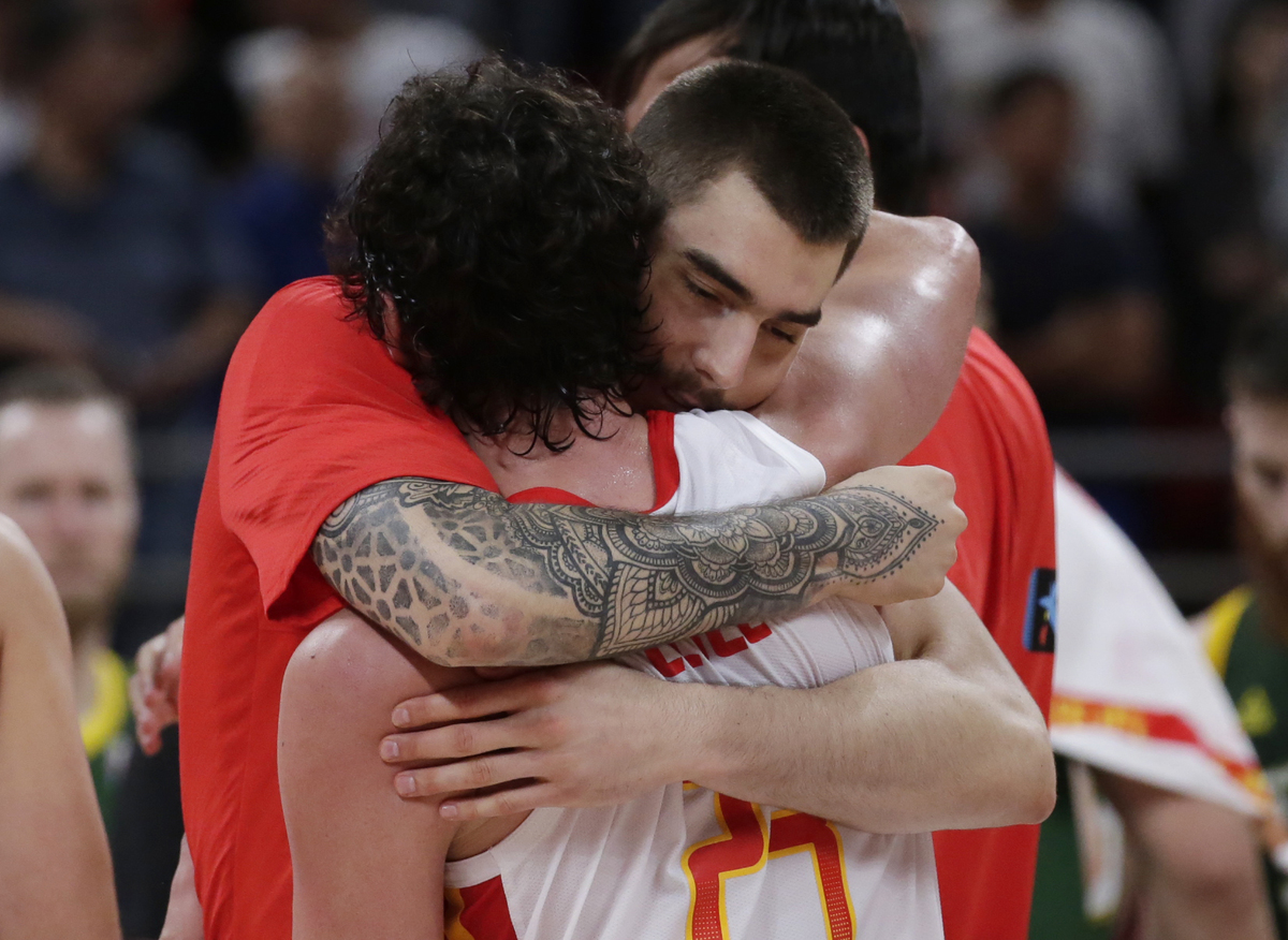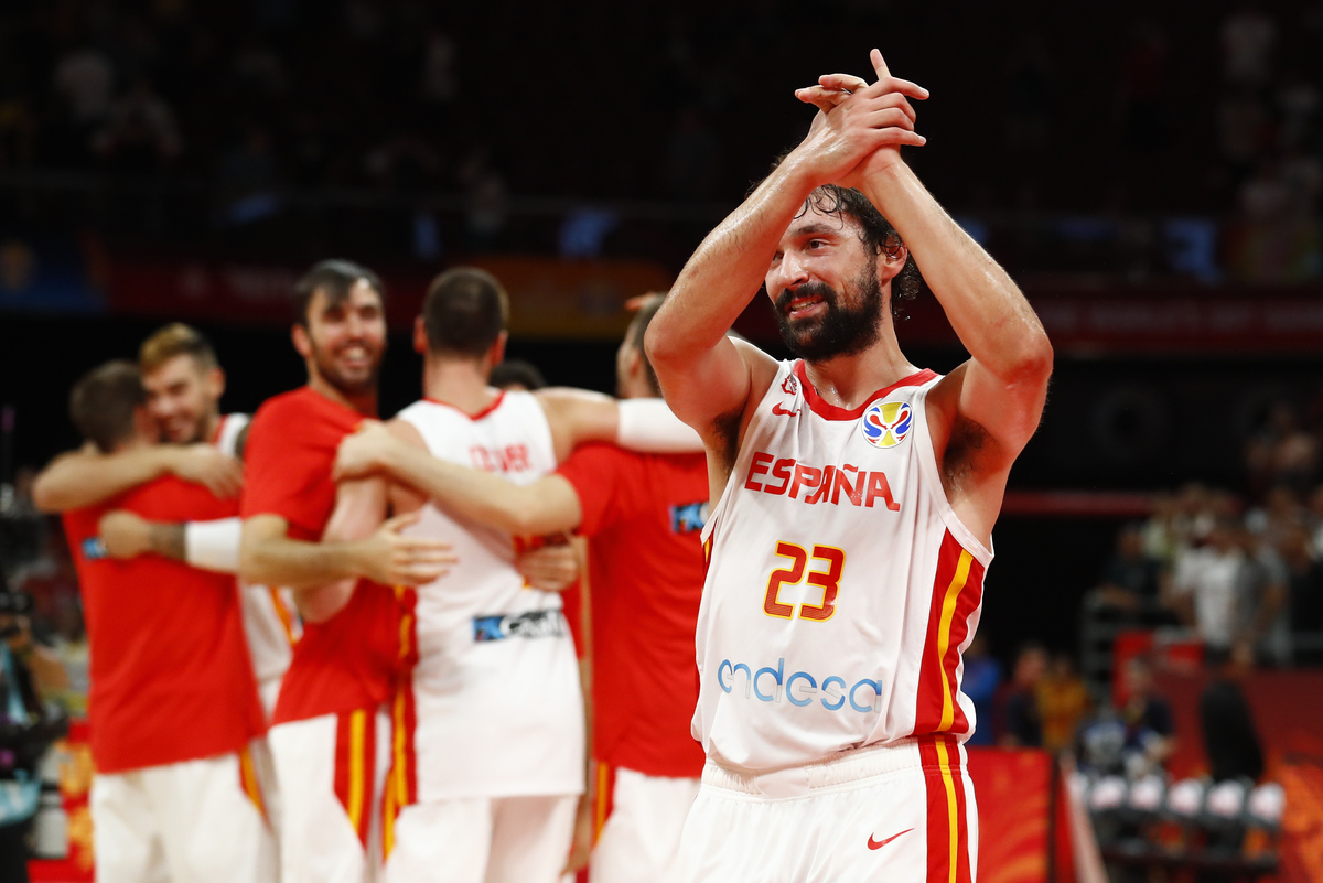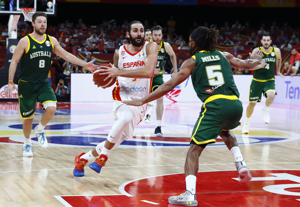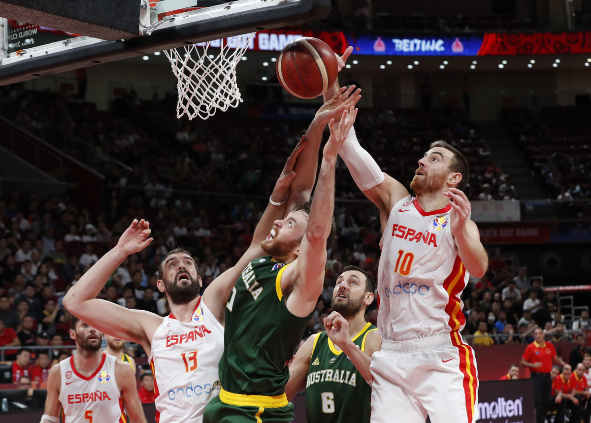 Basketball - FIBA World Cup - Semi Finals - Spain v Australia - Wukesong Sport Arena, Beijing, China - September 13, 2019 Spain's Ricky Rubio in action with Australia's Patty Mills and Matthew Dellavedova REUTERS/Thomas PeterBasketball - FIBA World Cup - Semi Finals - Spain v Australia - Wukesong Sport Arena, Beijing, China - September 13, 2019 Australia's Nic Kay in action with Spain's Marc Gasol and Rudy Fernandez REUTERS/Kim Kyung-HoonBasketball - FIBA World Cup - Semi Finals - Spain v Australia - Wukesong Sport Arena, Beijing, China - September 13, 2019 Australia's Patty Mills in action with Spain's Marc Gasol REUTERS/Thomas PeterBasketball - FIBA World Cup - Semi Finals - Spain v Australia - Wukesong Sport Arena, Beijing, China - September 13, 2019 Spain's Sergio Llull in action with Australia's Joe Ingles REUTERS/Thomas PeterBasketball - FIBA World Cup - Semi Finals - Spain v Australia - Wukesong Sport Arena, Beijing, China - September 13, 2019 Australia's Nic Kay and Andrew Bogut in action with Spain's Victor Claver and Marc Gasol REUTERS/Kim Kyung-HoonBasketball - FIBA World Cup - Semi Finals - Spain v Australia - Wukesong Sport Arena, Beijing, China - September 13, 2019 Australia's Mitch Creek in action with Spain's Juancho Hernangomez REUTERS/Kim Kyung-HoonBasketball - FIBA World Cup - Semi Finals - Spain v Australia - Wukesong Sport Arena, Beijing, China - September 13, 2019 Spain's Sergio Llull applauds fans after the match REUTERS/Thomas PeterBasketball - FIBA World Cup - Semi Finals - Spain v Australia - Wukesong Sport Arena, Beijing, China - September 13, 2019 Spain's Juancho Hernangomez and Sergio Llull celebrate victory after the match REUTERS/Jason LeeBasketball - FIBA World Cup - Semi Finals - Spain v Australia - Wukesong Sport Arena, Beijing, China - September 13, 2019 Spain's Victor Claver celebrates victory after the match REUTERS/Thomas PeterBasketball - FIBA World Cup - Semi Finals - Spain v Australia - Wukesong Sport Arena, Beijing, China - September 13, 2019 Australia's Joe Ingles, Nic Kay, David Barlow, Jock Landale and Patty Mills look dejected after the match REUTERS/Kim Kyung-Hoon