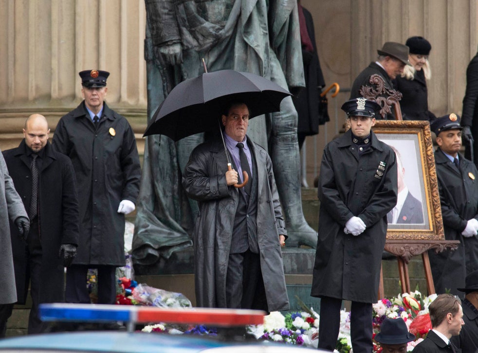 The scene, which was shot in Liverpool’s St George’s Hall yesterday (12 October), looked to be set in the aftermath of a funeral.
