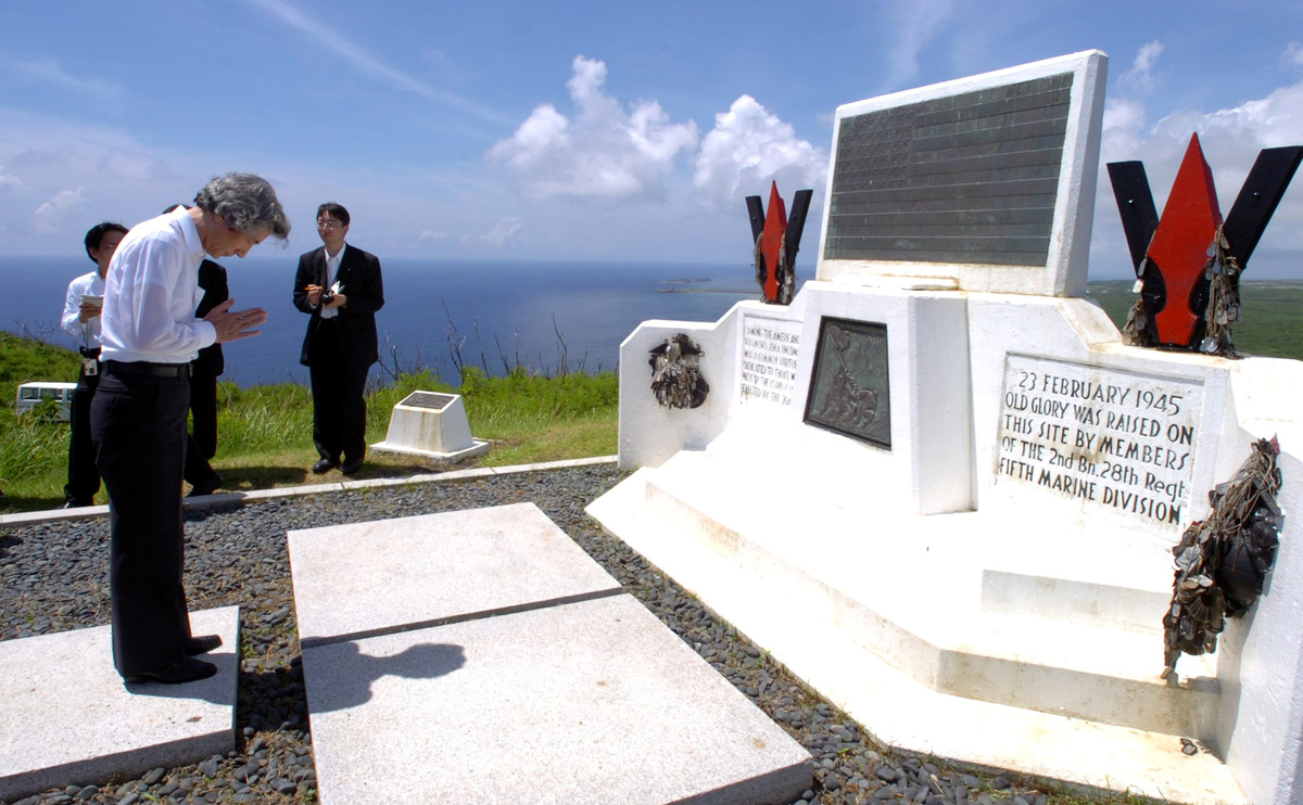 FILE PHOTO: The Iwo Jima memorial is shown under cloudy skies in Arlington, Virginia, overlooking Washington, D.C. February 23, 2005. REUTERS/Jason Reed/File PhotoFILE PHOTO: Family members of soldiers who died in the Battle of Iwo Jima, one of World War II's bloodiest and most symbolic battles, walk around a battery on the remote island of Iwo Jima, which is now officially called Iwo To in Japan, south of Tokyo, March 21, 2015, to mark the 70th anniversary of the battle. REUTERS/Pool/File Photo Wrecked U.S. Marine vehicles litter an Iwo Jima beach, 1945. Courtesy U.S. National Archives/U.S. Navy Petty Officer 3rd Class Robert M. Warren/Handout via REUTERS Explosions rock the Iwo Jima shore during the pre-landing bombardment, February 19, 1945. Photograph taken onboard a USS Sanborn (APA-193) landing craft. Courtesy U.S. Naval History and Heritage Command/Lieutenant Commander Howard W. Whalen/Handout via REUTERS White phosphorus rounds burst ashore during the pre-invasion bombardment of the island of Iwo Jima, February 17, 1945. Courtesy U.S. National Archives/U.S. Navy Photograph/Handout via REUTERS U.S. Marines with the 5th Division inch their way up a slope on Red Beach No. 1 toward Mount Suribachi on Iwo Jima, February 19, 1945. Courtesy U.S. National Archives/Handout via REUTERS FILE PHOTO: Dogtags and pins placed by United States soldiers decorate a signboard at the United States Marine Corps Landing Memorial on top of Mount Suribachi, Iwo-Jima December 13, 2006, the site of a fierce battle between Japanese and United States forces for control of airfields on the island during World War II. REUTERS/Michael Caronna/File PhotoU.S. Marines with the Fourth Division fire on enemy positions from the black sands of an Iwo Jima beach, February 1945. Courtesy U.S. National Archives/Handout via REUTERS A flame thrower in use against Japanese forces holding out in caves along Iwo Jima's coastal cliffs, as the U.S. Army conducts mopping up operations, April 8, 1945. Courtesy U.S. National Archives/U.S. Army Signal Corps Collection/Handout via REUTERS A U.S. Marine injured in the first wave assault at Iwo Jima rests on a bed of life preservers aboard a Coast Guard LCVP, February 19, 1945. Courtesy U.S. Naval History and Heritage Command/U.S. Coast Guard Photograph/Handout via REUTERS U.S. Marines covering the beach area at the southeast edge of Motoyama Airfield on Iwo Jima, 1945. Courtesy U.S. National Archives/U.S. Marine Corps Photograph/Sgt. P. Scheer/Handout via REUTERS U.S. Marines of the Second Battalion, Seventh Regiment, wait to move inland on Iwo Jima soon after going ashore, February 19, 1945. An LVT(A)-5 amphibious tractor is in the background. Taken by a Fifth Marine Division photographer. Courtesy U.S. Naval History and Heritage Command/U.S. Marine Corps Photograph/Handout via REUTERS A wave of Fourth Division U.S. Marines charge ashore on Iwo Jima as another boatload of Marines approaches, February 19, 1945. Courtesy U.S. National Archives/U.S. Marine Corps Photograph/Handout via REUTERS U.S. Marines pass the body of a Japanese soldier while under fire on Iwo Jima, 1945. Courtesy U.S. Naval History and Heritage/U.S. Marine Corps Photograph/Handout via REUTERS A U.S. Marine flamethrower operator with K Company goes over the top to assault a Japanese pillbox on Iwo Jima's Airfield Number Two, February 1945. Courtesy U.S. Naval History and Heritage/U.S. Marine Corps Photograph/Handout via REUTERS U.S. Navy doctors and corpsmen administer first aid to wounded Marines on Iwo Jima, February 20, 1945. Navy Chaplain Lieutenant (Junior Grade) John H. Galbreath (right center) is kneeling beside a man who has severe flash burns. Courtesy U.S. National Archives/U.S. Marine Corps Photograph/Warrant Officer Obie Newcomb, Jr/Handout via REUTERS A U.S. Marine flame thrower operator in action, covered by a pair of riflemen, on Iwo Jima, February 1945. Courtesy U.S. Naval History and Heritage Command/Handout via REUTERS U.S. forces fire a Bazooka rocket into the mouth of a cave along Iwo Jima's rugged northern coast during mopping up operations, April 8, 1945. Courtesy U.S. National Archives/U.S. Army Signal Corps/Handout via REUTERS SENSITIVE MATERIAL. THIS IMAGE MAY OFFEND OR DISTURB A dead Japanese soldier partially covered by sand at the entrance to a pillbox on Iwo Jima, February 24, 1945. Courtesy U.S. National Archives/U.S. Marine Corps Photograph/Handout via REUTERS U.S. Marines shelter in shell craters and foxholes on Iwo Jima, February 21, 1945. Courtesy U.S. National Archives/U.S. Navy Photograph/Handout via REUTERS A U.S. Marine fires a flame-thrower during operations on Iwo Jima, 1945. Courtesy U.S. Naval History and Heritage Command/U.S. Marine Corps Photograph/Handout via REUTERS U.S. Marines raise the American flag atop Mount Suribachi on Iwo Jima, 1945. Courtesy U.S. National Archives/U.S. Marine Corps Photograph/Private Bob Campbell/Handout via REUTERS Three Japanese soldiers emerge from their hiding place to surrender during mopping up operations by the U.S. Army on Iwo Jima, April 5, 1945. Courtesy U.S. National Archives/U.S. Army Signal Corps/Handout via REUTERS Iwo Jima under fire during the pre-landing bombardment, circa February 17-19, 1945. The view looks northeastward, with Mount Suribachi and Tobiishi Point in the foreground. Courtesy U.S. National Archives/U.S. Navy Photograph/Handout via REUTERS A U.S. Marine half-track self-propelled gun blasts an enemy-occupied pillbox on Iwo Jima as two U.S. Navy Landing Craft Support (LCS) pass offshore, February 19, 1945. Courtesy U.S. National Archives/U.S. Marine Corps Photograph/PFC A.L. Farnum/Handout via REUTERS A U.S. Marine surveys the shattered landscape while hunting for remaining Japanese forces on Iwo Jima, March 1945. Courtesy U.S. National Archives/U.S. Navy Photograph/Handout via REUTERSBurial at sea for a casualty of the battle for Iwo Jima onboard the USS Hansford, circa February 25-28, 1945. Courtesy U.S. National