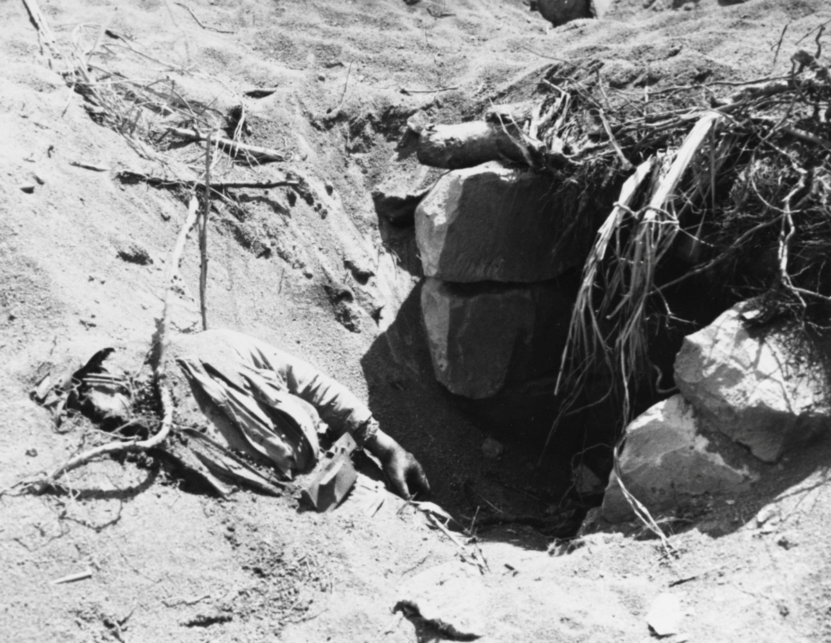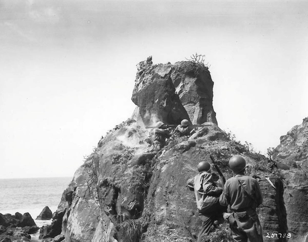 The Japanese troops held the heavily fortified island for more than a month, supported by a network of bunkers and tunnels and hidden artillery positions.