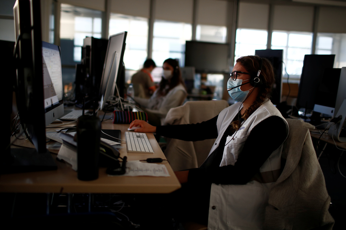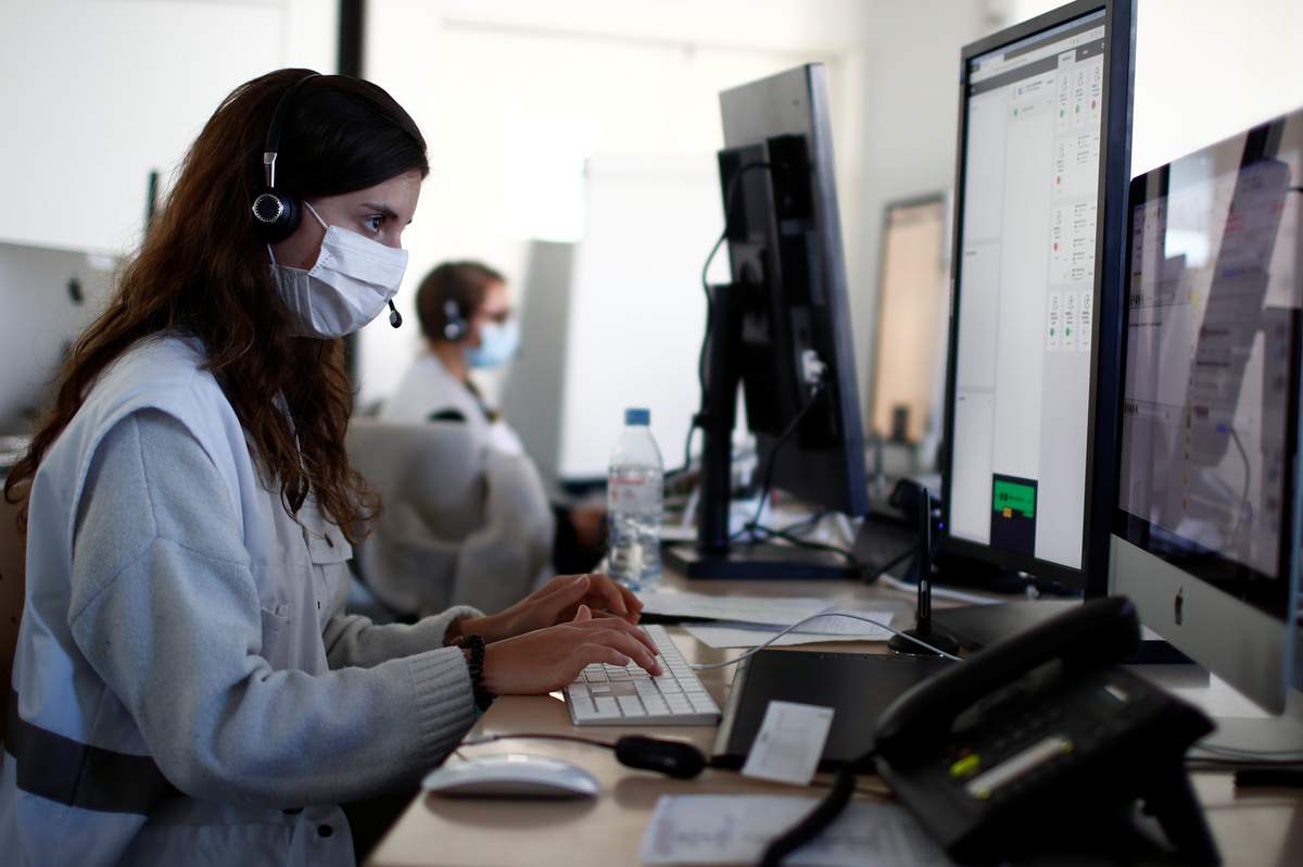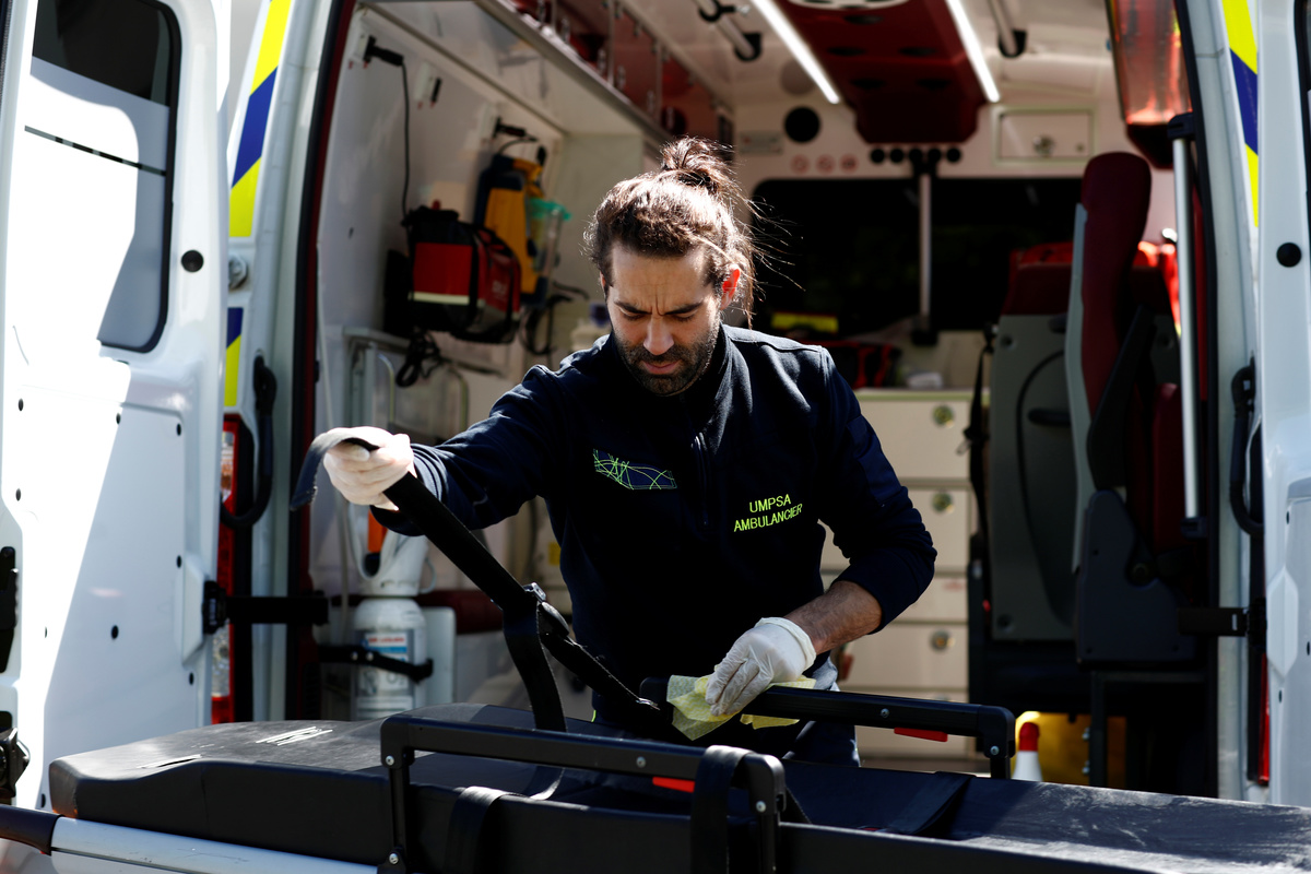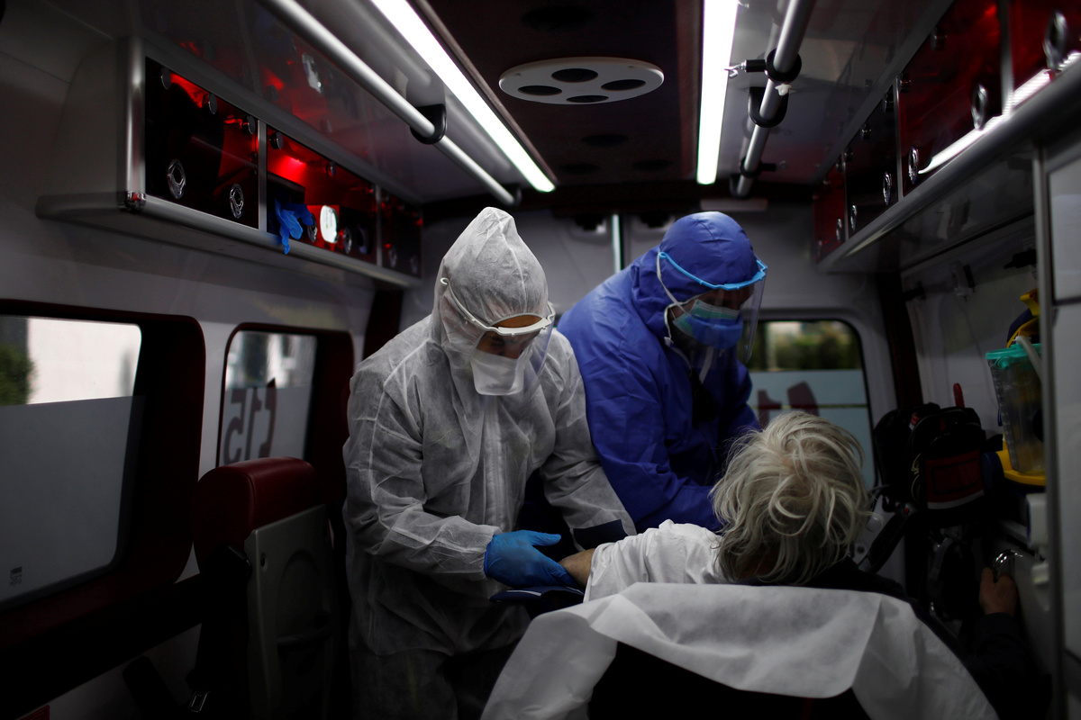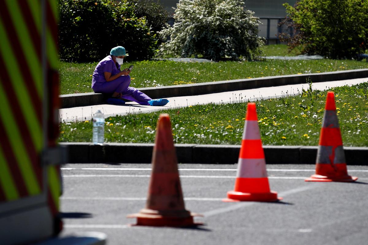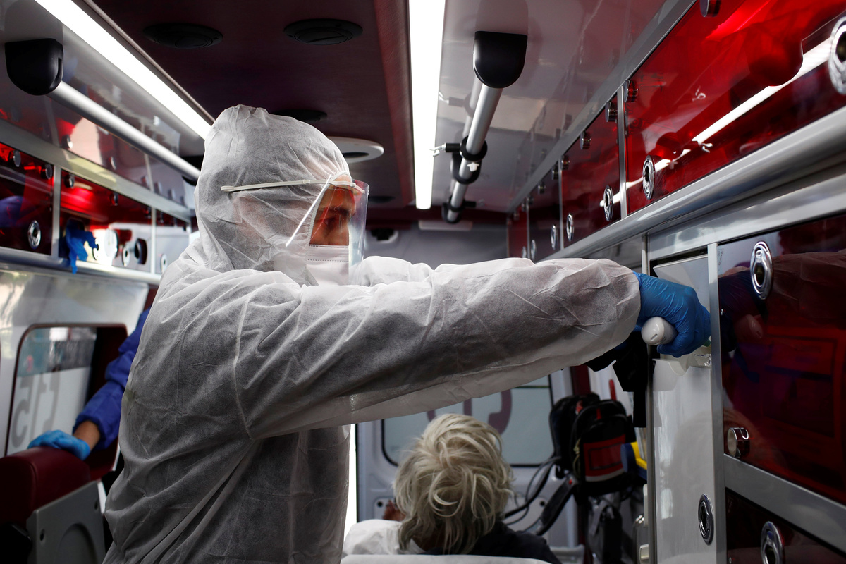 French ambulance men, wearing protective suits and masks, transport to an hospital a man suspected of being infected with the coronavirus disease in their ambulance in Mennecy near Paris as the spread of the coronavirus disease (COVID-19) continues in France April 15, 2020. REUTERS/Gonzalo FuentesA French ambulance man, wearing protective suit and mask, transports to an hospital a man suspected of being infected with the coronavirus disease in their ambulance in Mennecy near Paris as the spread of the coronavirus disease (COVID-19) continues in France April 15, 2020. REUTERS/Gonzalo FuentesA French ambulance man, wearing protective suit and mask, gets ready before to transport to an hospital a man suspected of being infected with the coronavirus disease in Mennecy near Paris as the spread of the coronavirus disease (COVID-19) continues in France April 15, 2020. REUTERS/Gonzalo FuentesA French ambulance man, wearing protective suit and mask, transports a man suspected of being infected with the coronavirus disease at the Sud Francilien hospital in Corbeil-Essonne near Paris as the spread of the coronavirus disease (COVID-19) continues in France April 15, 2020. REUTERS/Gonzalo FuentesA French ambulance man, wearing protective suit and mask, talks to a man suspected of being infected with the coronavirus disease in an ambulance as they arrive at the Sud Francilien hospital in Corbeil-Essonne near Paris as the spread of the coronavirus disease (COVID-19) continues in France April 15, 2020. REUTERS/Gonzalo FuentesA French ambulance man, wearing protective suit and mask, gets ready before to transport to an hospital a man suspected of being infected with the coronavirus disease in Mennecy near Paris as the spread of the coronavirus disease (COVID-19) continues in France April 15, 2020. REUTERS/Gonzalo FuentesAn ambulance transports a man suspected of being infected with the coronavirus disease at the Sud Francilien hospital in Corbeil-Essonne near Paris as the spread of the coronavirus disease (COVID-19) continues in France April 15, 2020. REUTERS/Gonzalo FuentesA French ambulance man disinfects an ambulance after transporting a man suspected of being infected with the coronavirus disease at the Sud Francilien hospital in Corbeil-Essonne near Paris as the spread of the coronavirus disease (COVID-19) continues in France April 15, 2020. REUTERS/Gonzalo FuentesA French ambulance man, wearing protective suit and mask, makes a phone call before to transport to an hospital a man suspected of being infected with the coronavirus disease in Mennecy near Paris as the spread of the coronavirus disease (COVID-19) continues in France April 15, 2020. REUTERS/Gonzalo FuentesA French ambulance man, wearing protective suit and mask, talks to a man suspected of being infected with the coronavirus disease in an ambulance as they arrive at the Sud Francilien hospital in Corbeil-Essonne near Paris as the spread of the coronavirus disease (COVID-19) continues in France April 15, 2020. REUTERS/Gonzalo FuentesA French ambulance man disinfects an ambulance after transporting a man suspected of being infected with the coronavirus disease at the Sud Francilien hospital in Corbeil-Essonne near Paris as the spread of the coronavirus disease (COVID-19) continues in France April 15, 2020. REUTERS/Gonzalo FuentesMedical staff, wearing protective face masks, work in an emergency call center for coronavirus disease (COVID-19) patients in Evry near Paris as the spread of the coronavirus disease continues in France, April 15, 2020.REUTERS/Gonzalo FuentesMedical staff, wearing protective face masks, work in an emergency call center for coronavirus disease (COVID-19) patients in Evry near Paris as the spread of the coronavirus disease continues in France, April 15, 2020.REUTERS/Gonzalo FuentesA nurse takes a break next to parking lot for ambulance at the Sud Francilien hospital in Corbeil-Essonne near Paris as the spread of the coronavirus disease (COVID-19) continues in France April 15, 2020. REUTERS/Gonzalo FuentesMedical staff, wearing protective face masks, work in an emergency call center for coronavirus disease (COVID-19) patients in Evry near Paris as the spread of the coronavirus disease continues in France, April 15, 2020.REUTERS/Gonzalo Fuentes