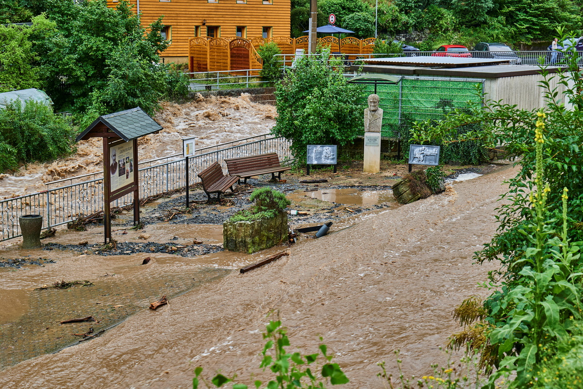 In Hallein, an Austrian town near Salzburg, powerful flood waters tore through the town centre on Saturday evening as the Kothbach river burst its banks, but no injuries were reported.