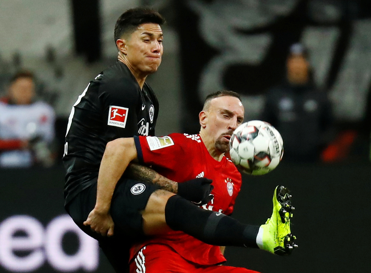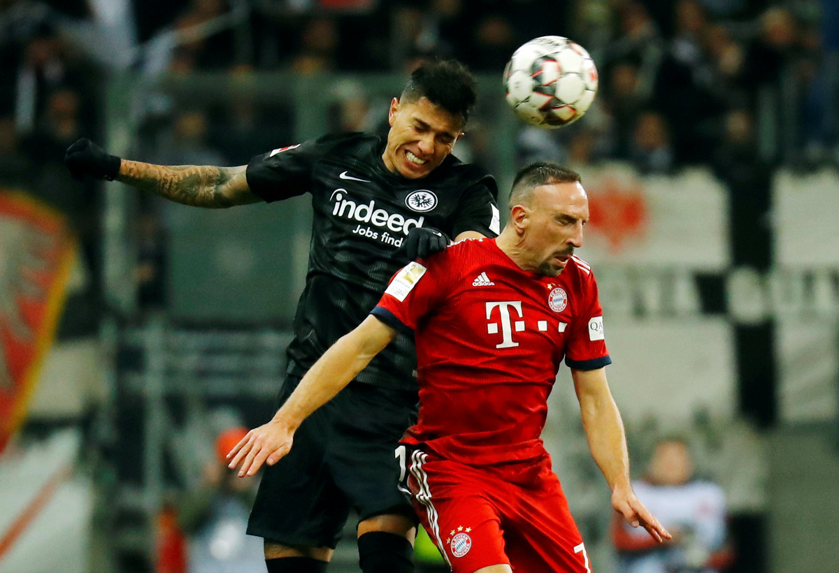 Bayern tried to slow down the game but Frankfurt kept at it and Danny Da Costa should have levelled for the hosts from two metres out but instead fluffed his back-heel effort.