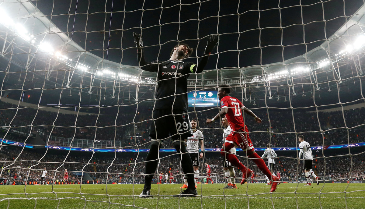 Soccer Football - Champions League Round of 16 Second Leg - Besiktas vs Bayern Munich - Vodafone Arena, Istanbul, Turkey - March 14, 2018 Besiktas coach Senol Gunes salutes their fans after the match REUTERS/Osman OrsalSoccer Football - Champions League Round of 16 Second Leg - Besiktas vs Bayern Munich - Vodafone Arena, Istanbul, Turkey - March 14, 2018 Bayern Munich’s Sandro Wagner celebrates with team mates after scoring their third goal REUTERS/Osman OrsalSoccer Football - Champions League Round of 16 Second Leg - Besiktas vs Bayern Munich - Vodafone Arena, Istanbul, Turkey - March 14, 2018 Besiktas fans REUTERS/Murad SezerSoccer Football - Champions League Round of 16 Second Leg - Besiktas vs Bayern Munich - Vodafone Arena, Istanbul, Turkey - March 14, 2018 Bayern Munich's Rafinha celebrates with Arturo Vidal after the match REUTERS/Murad SezerSoccer Football - Champions League Round of 16 Second Leg - Besiktas vs Bayern Munich - Vodafone Arena, Istanbul, Turkey - March 14, 2018 Besiktas' Tolga Zengin looks dejected after the match REUTERS/Murad SezerSoccer Football - Champions League Round of 16 Second Leg - Besiktas vs Bayern Munich - Vodafone Arena, Istanbul, Turkey - March 14, 2018 Besiktas' Tolga Zengin reacts after Bayern Munich’s Sandro Wagner (not pictured) scores their third goal REUTERS/Murad SezerSoccer Football - Champions League Round of 16 Second Leg - Besiktas vs Bayern Munich - Vodafone Arena, Istanbul, Turkey - March 14, 2018 Bayern Munich’s Sandro Wagner celebrates scoring their third goal REUTERS/Murad Sezer