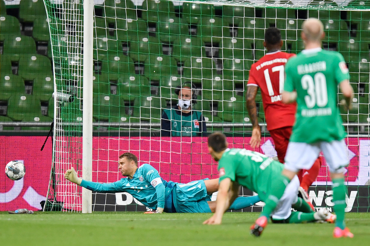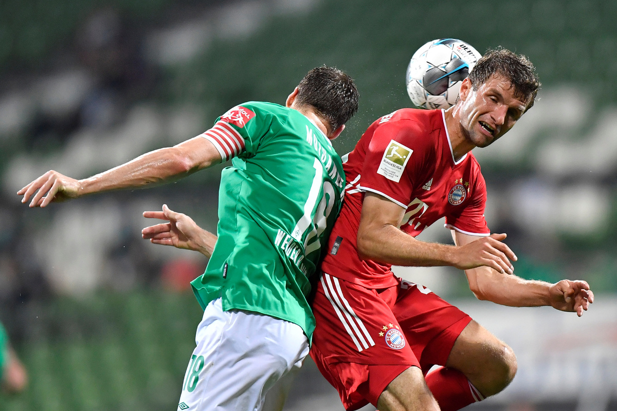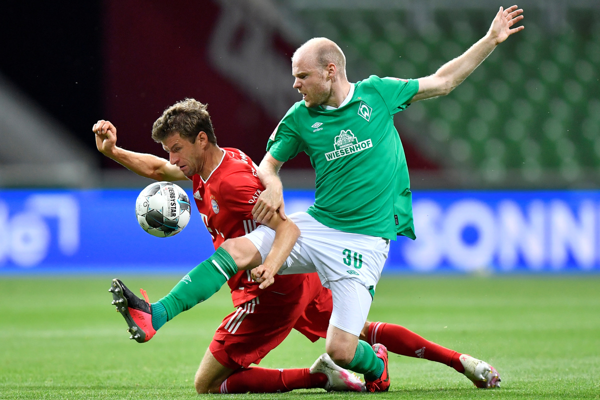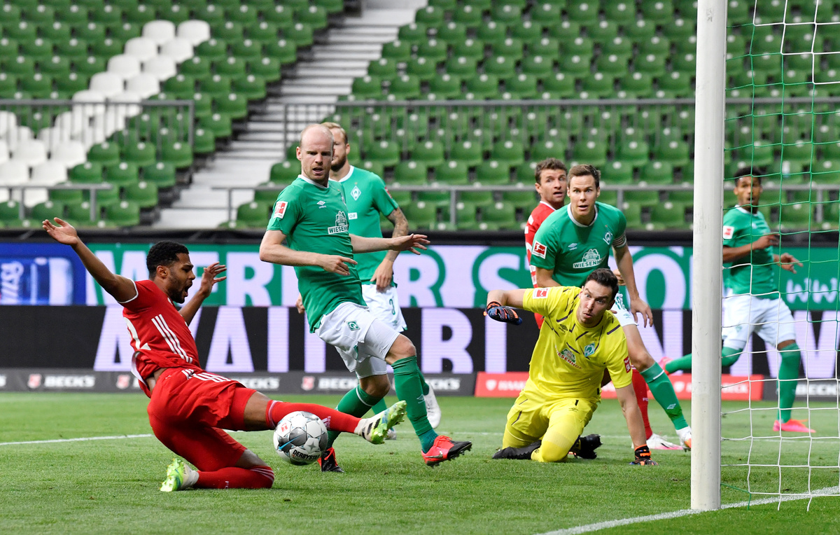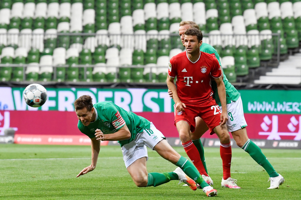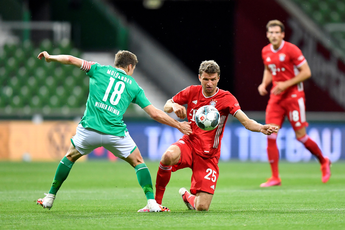 Soccer Football - Bundesliga - Werder Bremen v Bayern Munich - Weser-Stadion, Bremen, Germany - June 16, 2020 Bayern Munich's Thomas Muller in action with Werder Bremen's Marco Friedl, following the resumption of play behind closed doors after the outbreak of the coronavirus disease (COVID-19) Martin Meissner/Pool via REUTERSSoccer Football - Bundesliga - Werder Bremen v Bayern Munich - Weser-Stadion, Bremen, Germany - June 16, 2020 Bayern Munich's Serge Gnabry in action, following the resumption of play behind closed doors after the outbreak of the coronavirus disease (COVID-19) Martin Meissner/Pool via REUTERS Soccer Football - Bundesliga - Werder Bremen v Bayern Munich - Weser-Stadion, Bremen, Germany - June 16, 2020 Bayern Munich's Joshua Kimmich and Jerome Boateng in action with Werder Bremen's Yuya Osako, following the resumption of play behind closed doors after the outbreak of the coronavirus disease (COVID-19) Martin Meissner/Pool via REUTERSSoccer Football - Bundesliga - Werder Bremen v Bayern Munich - Weser-Stadion, Bremen, Germany - June 16, 2020 Bayern Munich's Robert Lewandowski scores their first goal, following the resumption of play behind closed doors after the outbreak of the coronavirus disease (COVID-19) Martin Meissner/Pool via REUTERS Soccer Football - Bundesliga - Werder Bremen v Bayern Munich - Weser-Stadion, Bremen, Germany - June 16, 2020 Bayern Munich's Thomas Muller in action with Werder Bremen's Davy Klaassen, following the resumption of play behind closed doors after the outbreak of the coronavirus disease (COVID-19) Martin Meissner/Pool via REUTERS Soccer Football - Bundesliga - Werder Bremen v Bayern Munich - Weser-Stadion, Bremen, Germany - June 16, 2020 Bayern Munich's Robert Lewandowski in action with Werder Bremen's Niklas Moisander, following the resumption of play behind closed doors after the outbreak of the coronavirus disease (COVID-19) Martin Meissner/Pool via REUTERS Soccer Football - Bundesliga - Werder Bremen v Bayern Munich - Weser-Stadion, Bremen, Germany - June 16, 2020 Bayern Munich's Kingsley Coman in action with Werder Bremen's Maximilian Eggestein, following the resumption of play behind closed doors after the outbreak of the coronavirus disease (COVID-19) Martin Meissner/Pool via REUTERS Soccer Football - Bundesliga - Werder Bremen v Bayern Munich - Weser-Stadion, Bremen, Germany - June 16, 2020 Bayern Munich's Jerome Boateng in action with Werder Bremen's Yuya Osako, following the resumption of play behind closed doors after the outbreak of the coronavirus disease (COVID-19) Martin Meissner/Pool via REUTERS Soccer Football - Bundesliga - Werder Bremen v Bayern Munich - Weser-Stadion, Bremen, Germany - June 16, 2020 Bayern Munich's Robert Lewandowski celebrates with Thomas Muller after scoring a goal later disallowed for offside, following the resumption of play behind closed doors after the outbreak of the coronavirus disease (COVID-19) Martin Meissner/Pool via REUTERS Soccer Football - Bundesliga - Werder Bremen v Bayern Munich - Weser-Stadion, Bremen, Germany - June 16, 2020 Bayern Munich's Kingsley Coman in action, following the resumption of play behind closed doors after the outbreak of the coronavirus disease (COVID-19) Martin Meissner/Pool via REUTERS Soccer Football - Bundesliga - Werder Bremen v Bayern Munich - Weser-Stadion, Bremen, Germany - June 16, 2020 Bayern Munich's Thomas Muller in action with Werder Bremen's Niklas Moisander, following the resumption of play behind closed doors after the outbreak of the coronavirus disease (COVID-19) Martin Meissner/Pool via REUTERS Soccer Football - Bundesliga - Werder Bremen v Bayern Munich - Weser-Stadion, Bremen, Germany - June 16, 2020 Bayern Munich's Thomas Muller in action with Werder Bremen's Niklas Moisander, following the resumption of play behind closed doors after the outbreak of the coronavirus disease (COVID-19) Martin Meissner/Pool via REUTERS Soccer Football - Bundesliga - Werder Bremen v Bayern Munich - Weser-Stadion, Bremen, Germany - June 16, 2020 Bayern Munich's Robert Lewandowski celebrates scoring their first goal, following the resumption of play behind closed doors after the outbreak of the coronavirus disease (COVID-19) Martin Meissner/Pool via REUTERSSoccer Football - Bundesliga - Werder Bremen v Bayern Munich - Weser-Stadion, Bremen, Germany - June 16, 2020 Bayern Munich's Manuel Neuer in action, following the resumption of play behind closed doors after the outbreak of the coronavirus disease (COVID-19) Martin Meissner/Pool via REUTERS Soccer Football - Bundesliga - Werder Bremen v Bayern Munich - Weser-Stadion, Bremen, Germany - June 16, 2020 Bayern Munich's Thomas Muller in action with Werder Bremen's Niklas Moisander, following the resumption of play behind closed doors after the outbreak of the coronavirus disease (COVID-19) Martin Meissner/Pool via REUTERS