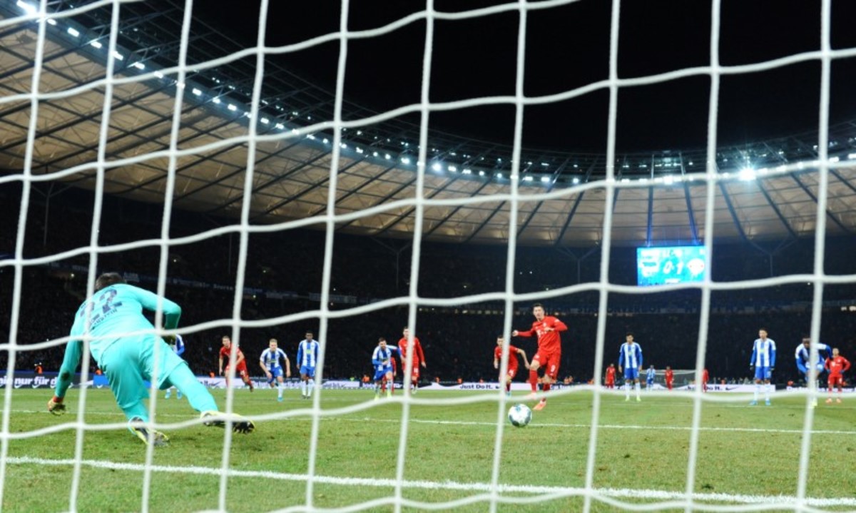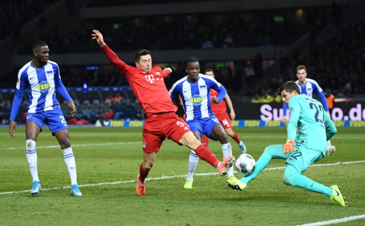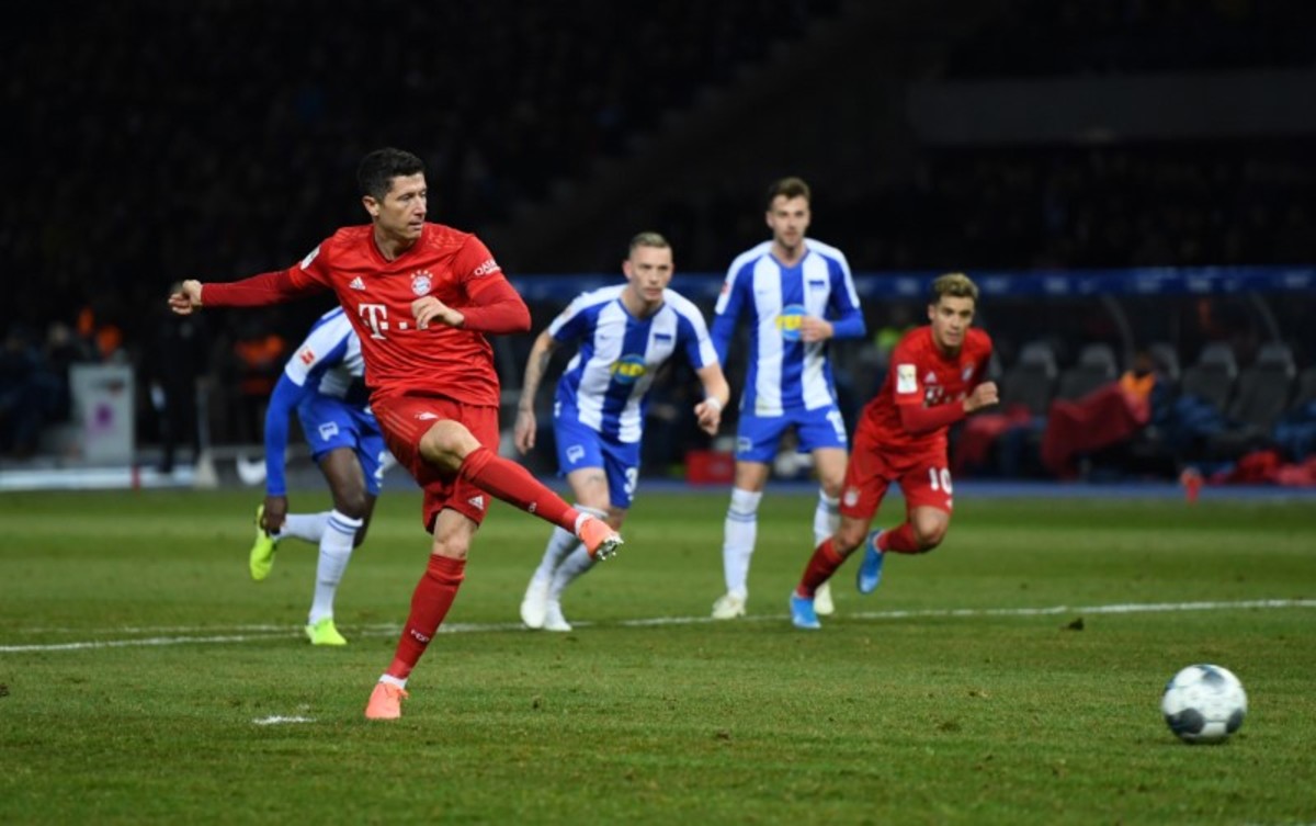 Robert Lewandowski, back following groin surgery in December, bagged his 20th league goal of this season when the Polish striker sent keeper Rune Jarstein the wrong way to score with a 73rd-minute penalty.