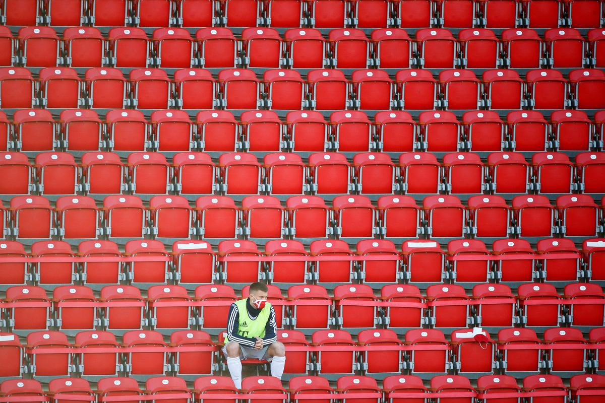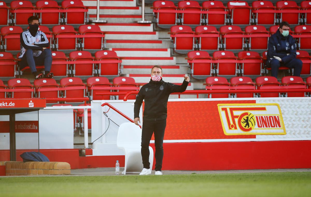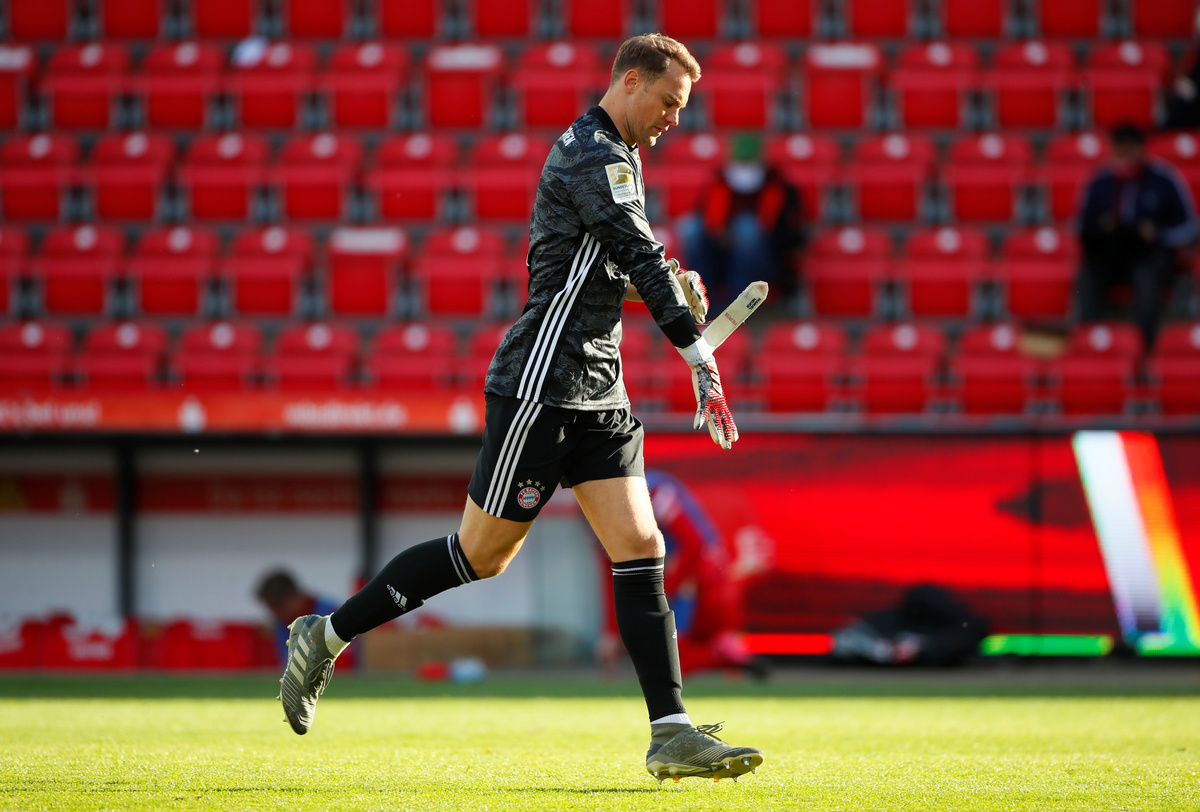 Soccer Football - Bundesliga - 1. FC Union Berlin v Bayern Munich - Stadion An der Alten Forsterei, Berlin, Germany - May 17, 2020 Bayern Munich coach Hans-Dieter Flick wearing a protective face mask, as play resumes behind closed doors following the outbreak of the coronavirus disease (COVID-19) REUTERS/Hannibal Hanschke/Pool Soccer Football - Bundesliga - 1. FC Union Berlin v Bayern Munich - Stadion An der Alten Forsterei, Berlin, Germany - May 17, 2020 Bayern Munich susbstitute Lukas Mai in the stands wearing a protective face mask, as play resumes behind closed doors following the outbreak of the coronavirus disease (COVID-19) REUTERS/Hannibal Hanschke/Pool Soccer Football - Bundesliga - 1. FC Union Berlin v Bayern Munich - Stadion An der Alten Forsterei, Berlin, Germany - May 17, 2020 Bayern Munich's Manuel Neuer, as play resumes behind closed doors following the outbreak of the coronavirus disease (COVID-19) REUTERS/Hannibal Hanschke/Pool Soccer Football - Bundesliga - 1. FC Union Berlin v Bayern Munich - Stadion An der Alten Forsterei, Berlin, Germany - May 17, 2020 Bayern Munich's Manuel Neuer, as play resumes behind closed doors following the outbreak of the coronavirus disease (COVID-19) REUTERS/Hannibal Hanschke/Pool