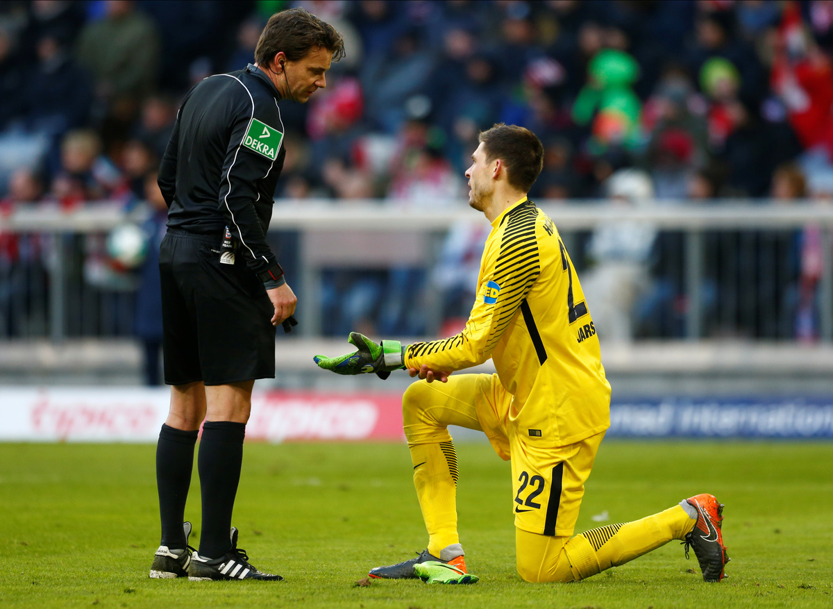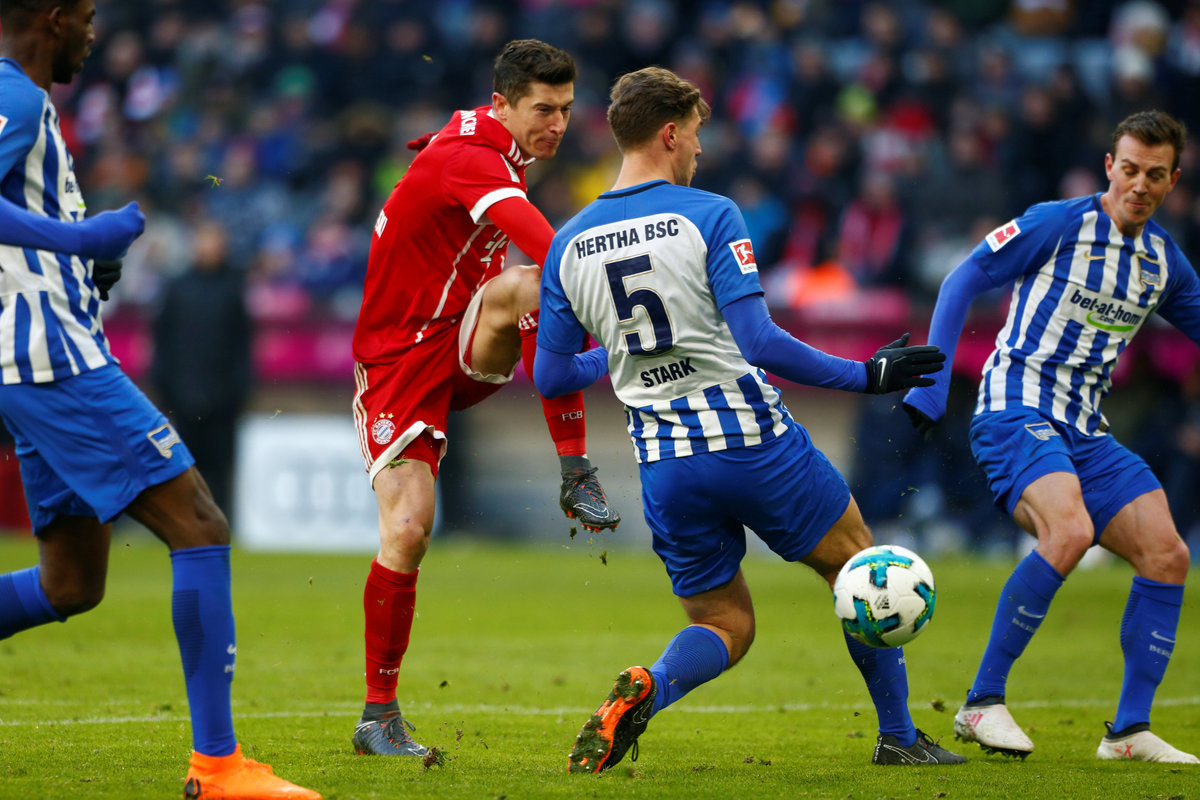 Hertha goalkeeper Rune Jarstein made several stops from striker Robert Lewandowski and a diving save from Arjen Robben's free kick in stoppage time.