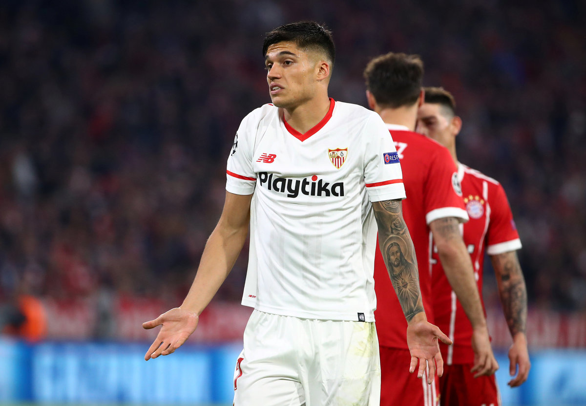 Soccer Football - Champions League Quarter Final Second Leg - Bayern Munich vs Sevilla - Allianz Arena, Munich, Germany - April 11, 2018 Sevilla's Joaquin Correa reacts REUTERS/Michael Dalder