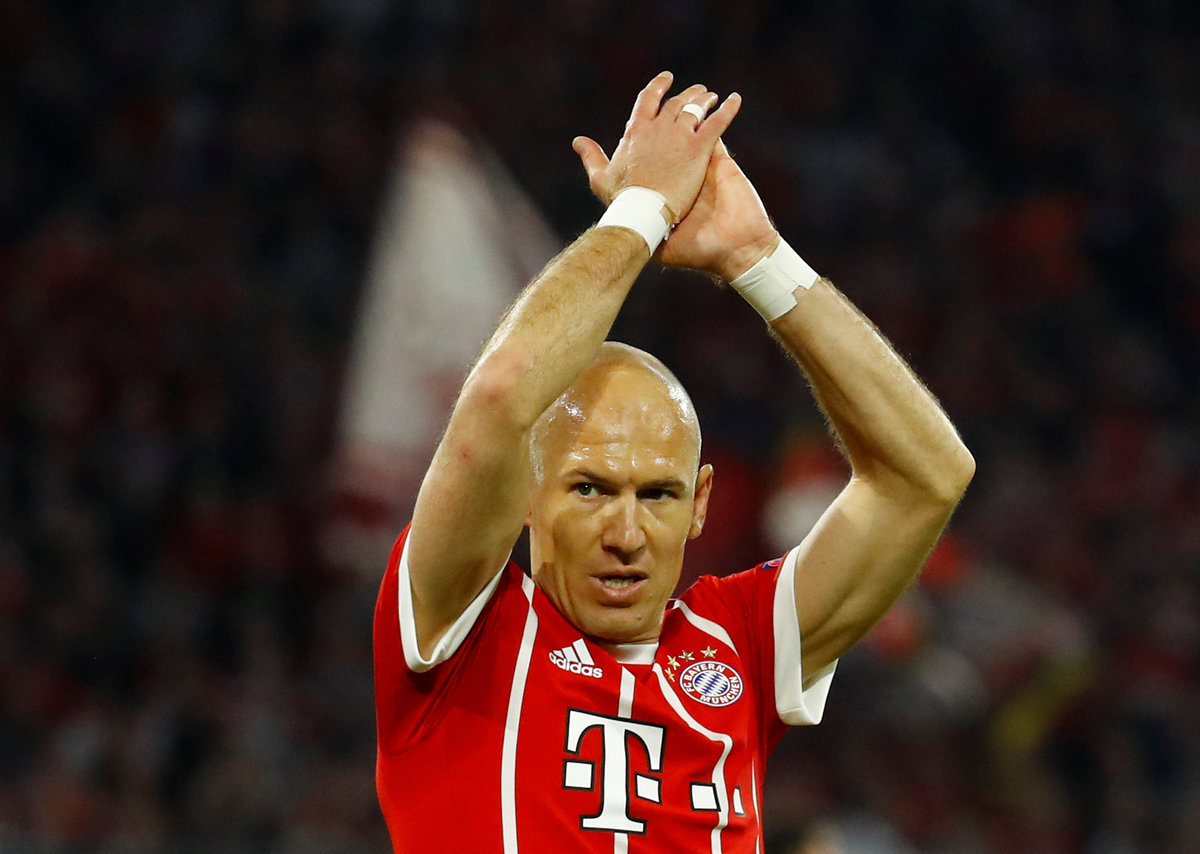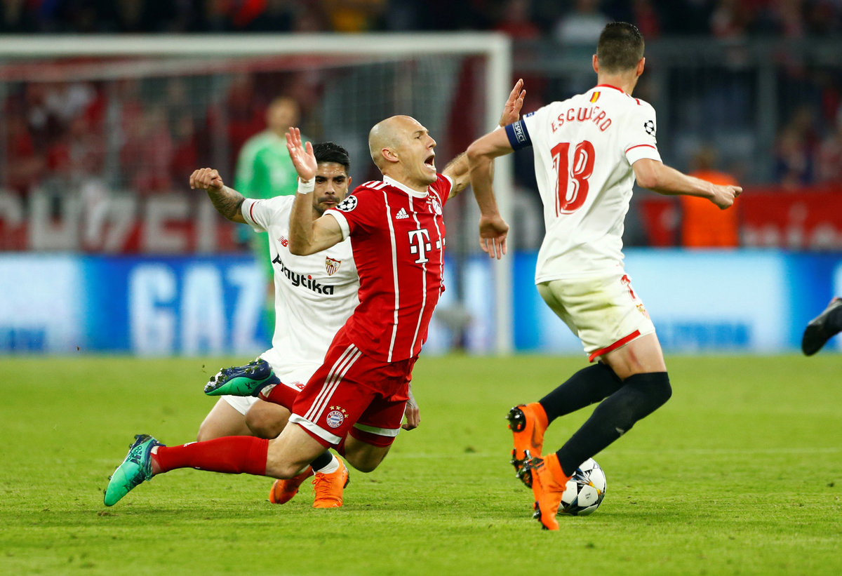 Soccer Football - Champions League Quarter Final Second Leg - Bayern Munich vs Sevilla - Allianz Arena, Munich, Germany - April 11, 2018 Bayern Munich's Arjen Robben REUTERS/Kai PfaffenbachSoccer Football - Champions League Quarter Final Second Leg - Bayern Munich vs Sevilla - Allianz Arena, Munich, Germany - April 11, 2018 Bayern Munich's Arjen Robben looks on REUTERS/Michael DalderSoccer Football - Champions League Quarter Final Second Leg - Bayern Munich vs Sevilla - Allianz Arena, Munich, Germany - April 11, 2018 Bayern Munich's Arjen Robben is fouled by Sevilla's Ever Banega and as Sergio Escudero looks on REUTERS/Michaela RehleSoccer Football - Champions League Quarter Final Second Leg - Bayern Munich vs Sevilla - Allianz Arena, Munich, Germany - April 11, 2018 Bayern Munich's Robert Lewandowski in action with Sevilla's Gabriel Mercado REUTERS/Kai PfaffenbachSoccer Football - Champions League Quarter Final Second Leg - Bayern Munich vs Sevilla - Allianz Arena, Munich, Germany - April 11, 2018 Bayern Munich's Robert Lewandowski gestures after a clash REUTERS/Kai PfaffenbachSoccer Football - Champions League Quarter Final Second Leg - Bayern Munich vs Sevilla - Allianz Arena, Munich, Germany - April 11, 2018 Sevilla's Franco Vazquez in action with Bayern Munich's Franck Ribery REUTERS/Kai PfaffenbachSoccer Football - Champions League Quarter Final Second Leg - Bayern Munich vs Sevilla - Allianz Arena, Munich, Germany - April 11, 2018 Bayern Munich's Franck Ribery REUTERS/Kai PfaffenbachSoccer Football - Champions League Quarter Final Second Leg - Bayern Munich vs Sevilla - Allianz Arena, Munich, Germany - April 11, 2018 Bayern Munich coach Jupp Heynckes REUTERS/Kai PfaffenbachSoccer Football - Champions League Quarter Final Second Leg - Bayern Munich vs Sevilla - Allianz Arena, Munich, Germany - April 11, 2018 Bayern Munich coach Jupp Heynckes gestures REUTERS/Michaela RehleSoccer Football - Champions League Quarter Final Second Leg - Bayern Munich vs Sevilla - Allianz Arena, Munich, Germany - April 11, 2018 Bayern Munich coach Jupp Heynckes gives instructions to Joshua Kimmich REUTERS/Michaela RehleSoccer Football - Champions League Quarter Final Second Leg - Bayern Munich vs Sevilla - Allianz Arena, Munich, Germany - April 11, 2018 Bayern Munich coach Jupp Heynckes gestures REUTERS/Michaela Rehle