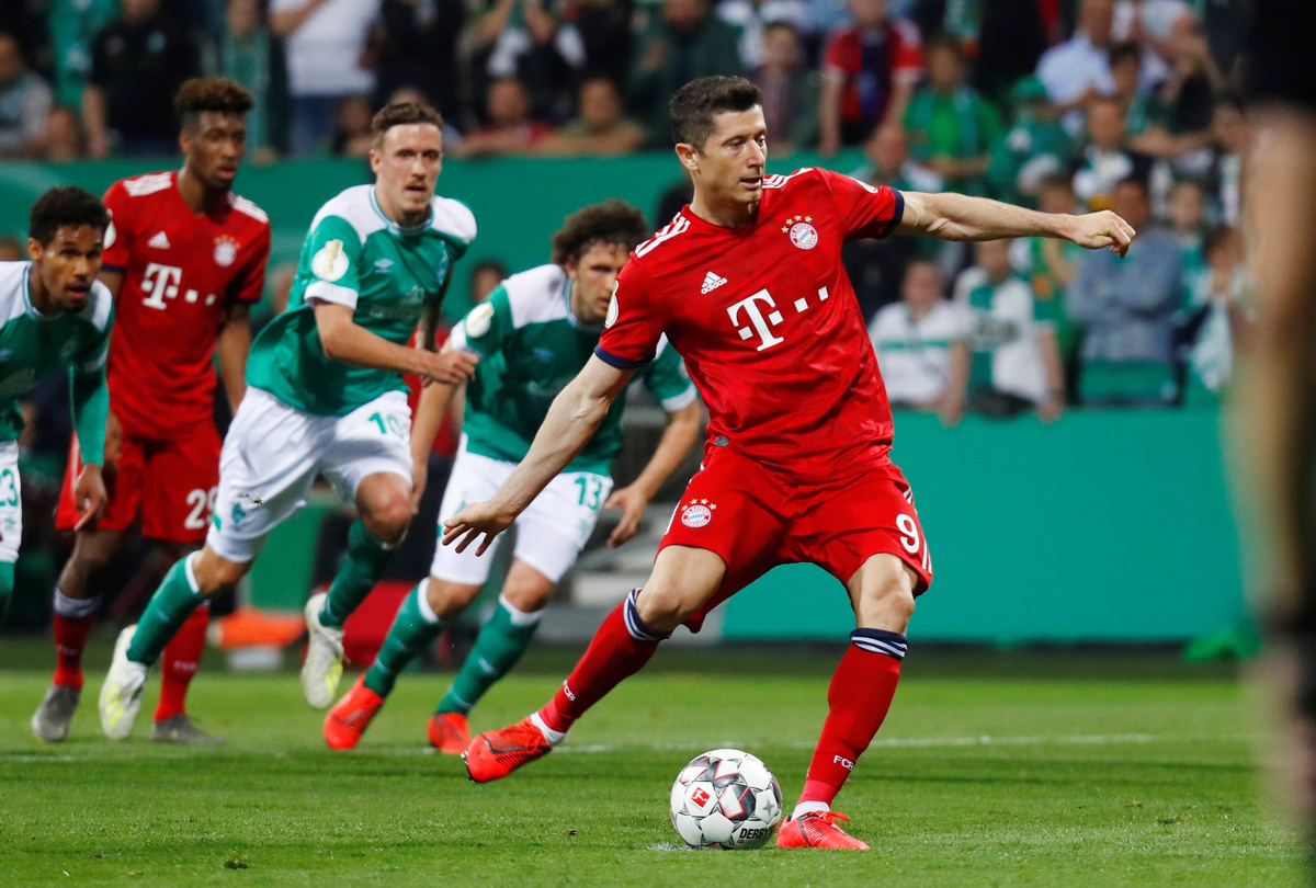Werder scored twice in two minutes to come back from two goals down to level at 2-2 before Lewandowski hit an 80th minute penalty to secure victory for Bayern, who are chasing a record-extending 19th cup victory.