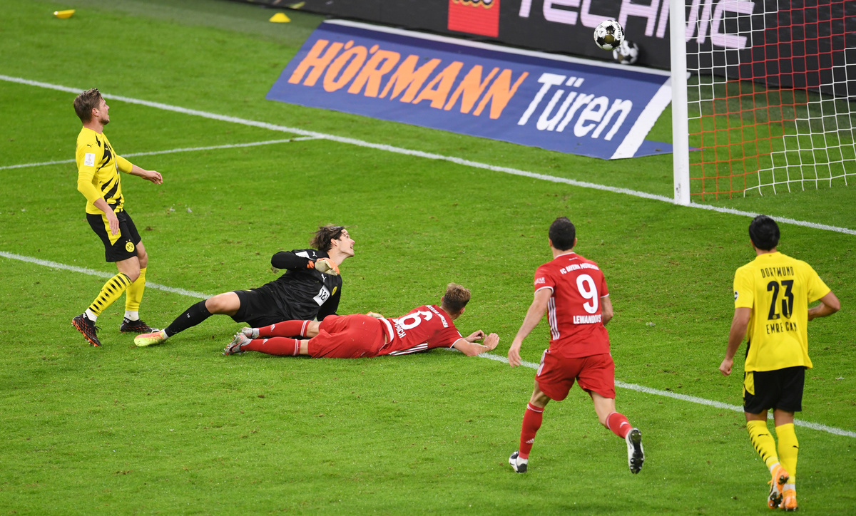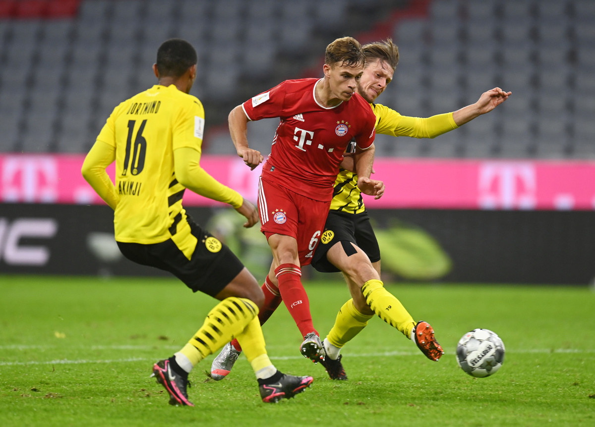 Bayern Munich wasted a two-goal lead and needed a lucky 82nd- minute winner from Joshua Kimmich to beat Borussia Dortmund 3-2 in Germany's Super Cup on Wednesday and secure their fifth title of the year.