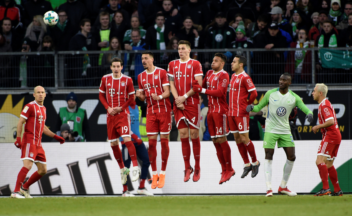 Bayern clocked up a 10th successive Bundesliga win despite falling behind to an early Daniel Didavi goal and missing a penalty when Arjen Robben's effort was saved by Koen Casteels after halftime.