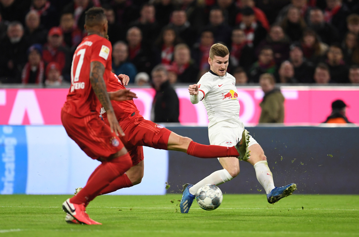 Soccer Football - Bundesliga - Bayern Munich v RB Leipzig - Allianz Arena, Munich, Germany - February 9, 2020 RB Leipzig's Timo Werner in action REUTERS/Andreas Gebert DFL regulations prohibit any use of photographs as image sequences and/or quasi-videoSoccer Football - Bundesliga - Bayern Munich v RB Leipzig - Allianz Arena, Munich, Germany - February 9, 2020 Bayern Munich's Thiago and Kingsley Coman applaud the fans after the match REUTERS/Andreas Gebert DFL regulations prohibit any use of photographs as image sequences and/or quasi-videoSoccer Football - Bundesliga - Bayern Munich v RB Leipzig - Allianz Arena, Munich, Germany - February 9, 2020 Referee Marco Fritz awards Bayern Munich a penalty kick before the decision is overturned following a VAR review REUTERS/Andreas Gebert DFL regulations prohibit any use of photographs as image sequences and/or quasi-videoSoccer Football - Bundesliga - Bayern Munich v RB Leipzig - Allianz Arena, Munich, Germany - February 9, 2020 Bayern Munich's Thiago and teammates applaud the fans after the match REUTERS/Andreas Gebert DFL regulations prohibit any use of photographs as image sequences and/or quasi-videoSoccer Football - Bundesliga - Bayern Munich v RB Leipzig - Allianz Arena, Munich, Germany - February 9, 2020 RB Leipzig's Tyler Adams in action with Bayern Munich's Alphonso Davies REUTERS/Andreas Gebert DFL regulations prohibit any use of photographs as image sequences and/or quasi-video