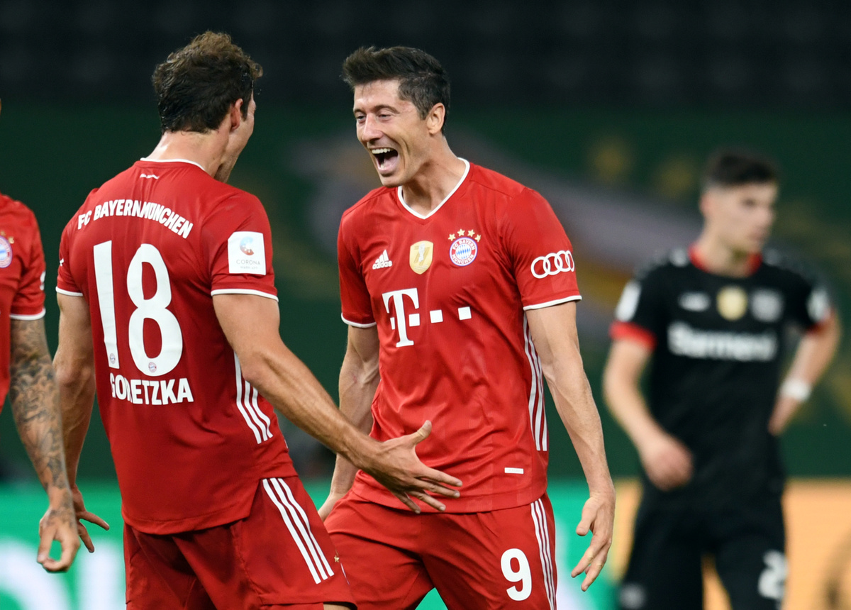 Leverkusen opened their account when Sven Bender headed home at the far post from a corner kick but it was too little, too late as Lewandowski grabbed a second with a chip over the keeper in the 89th minute from Ivan Perisic's cutback.