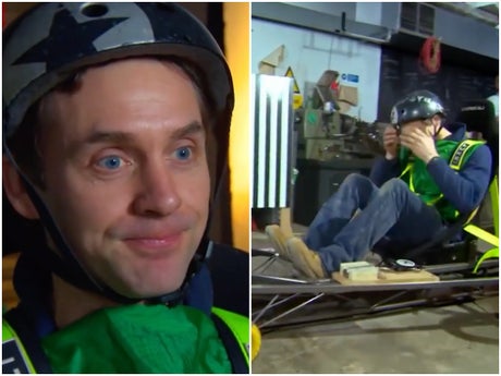 In the episode, Stansfield remarks that he is “a little nervous” about the stunt, adding: “I’m forward-facing, I’m heading for a solid-steel bar. How bad can it be?”