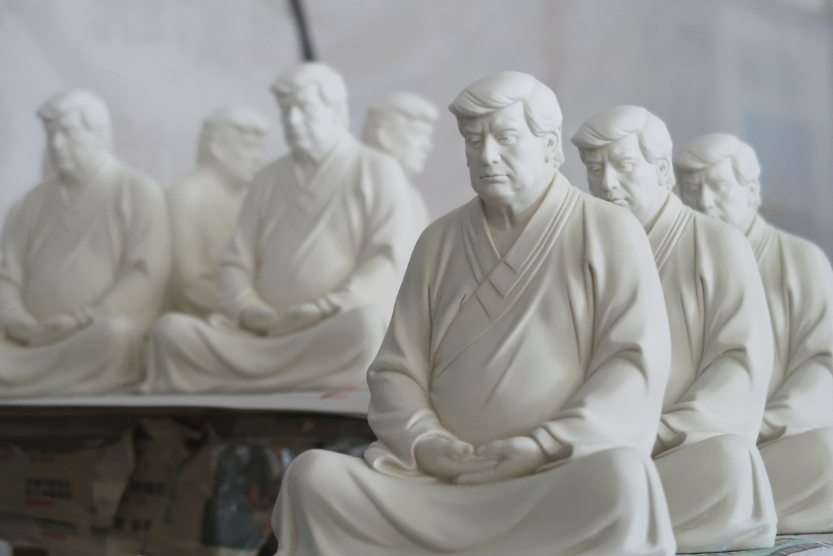 Six months on, Hong's amusing hobby has turned into a small side-hustle, with a workshop in the town of Dehua in Fujian province on track to produce an inaugural batch of 250 statues of Trump dressed in Buddhist robes with his legs crossed.