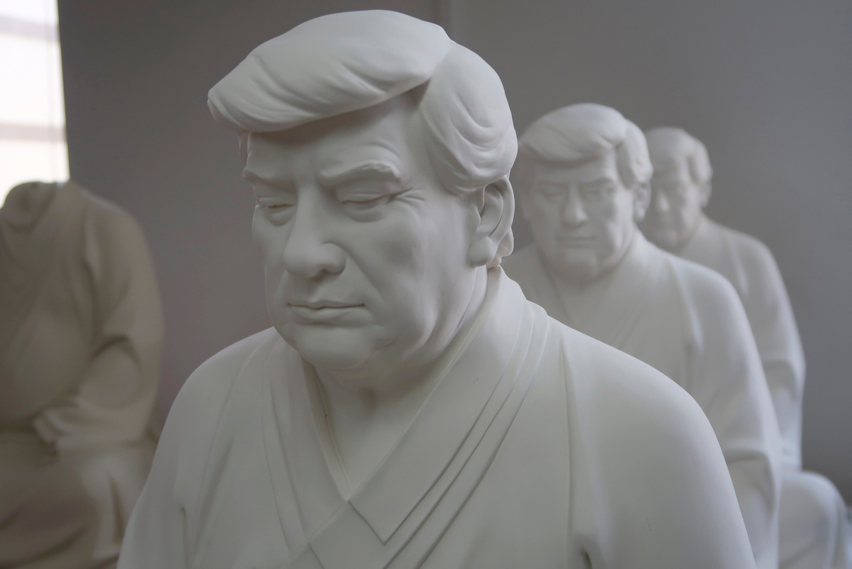 Chinese furniture maker Hong Jinshi first created a couple of pint-sized statues of former U.S. President Donald Trump meditating in a Buddhist pose as a fun project for himself last year.