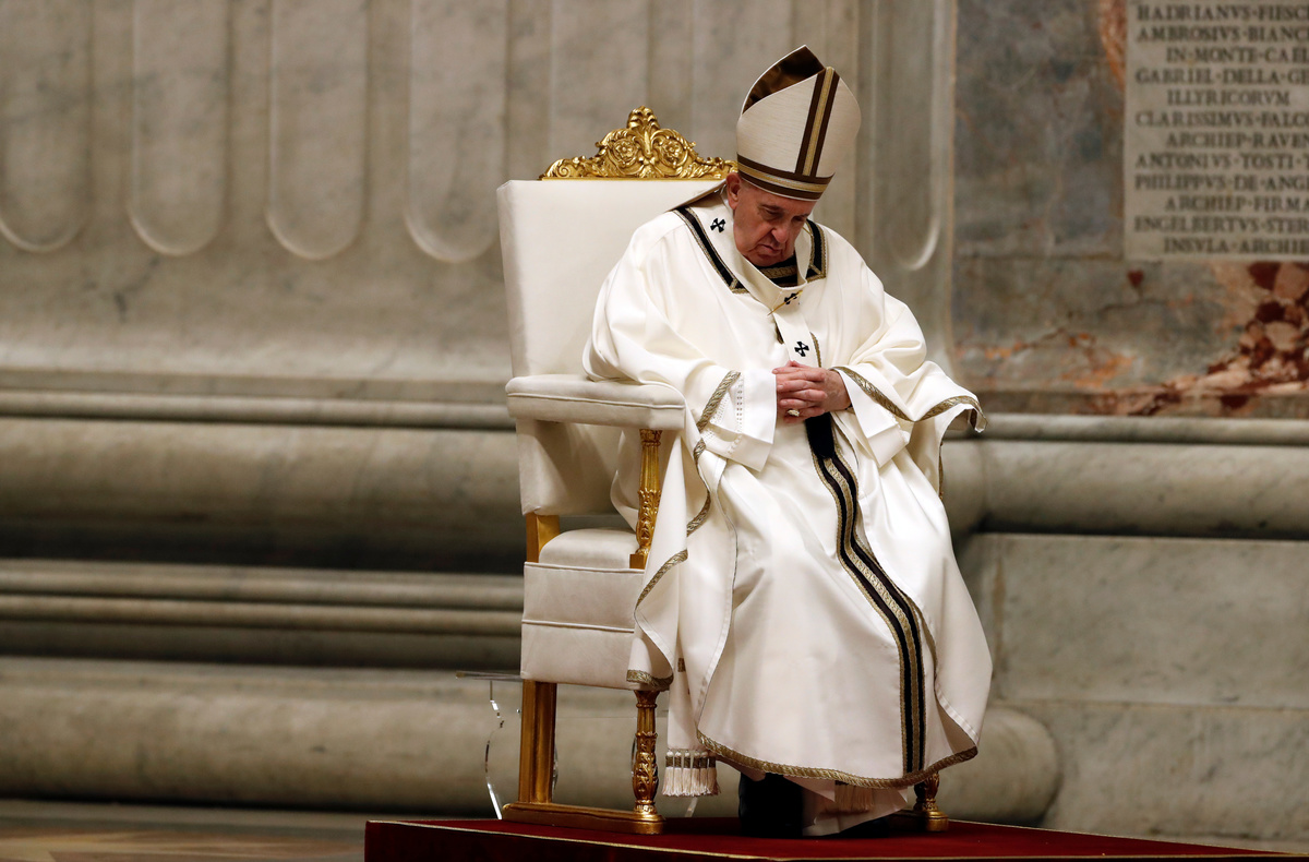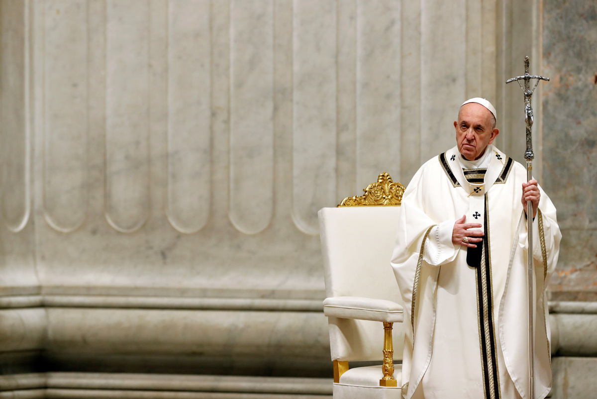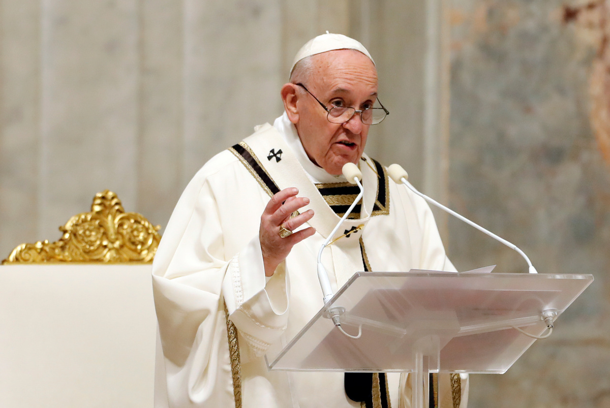 Pope Francis urged people to "not yield to fear" and focused on a "message of hope" as he led an Easter eve Mass in an empty St. Peter's Basilica on Saturday amid the coronavirus pandemic and called for an end to wars.