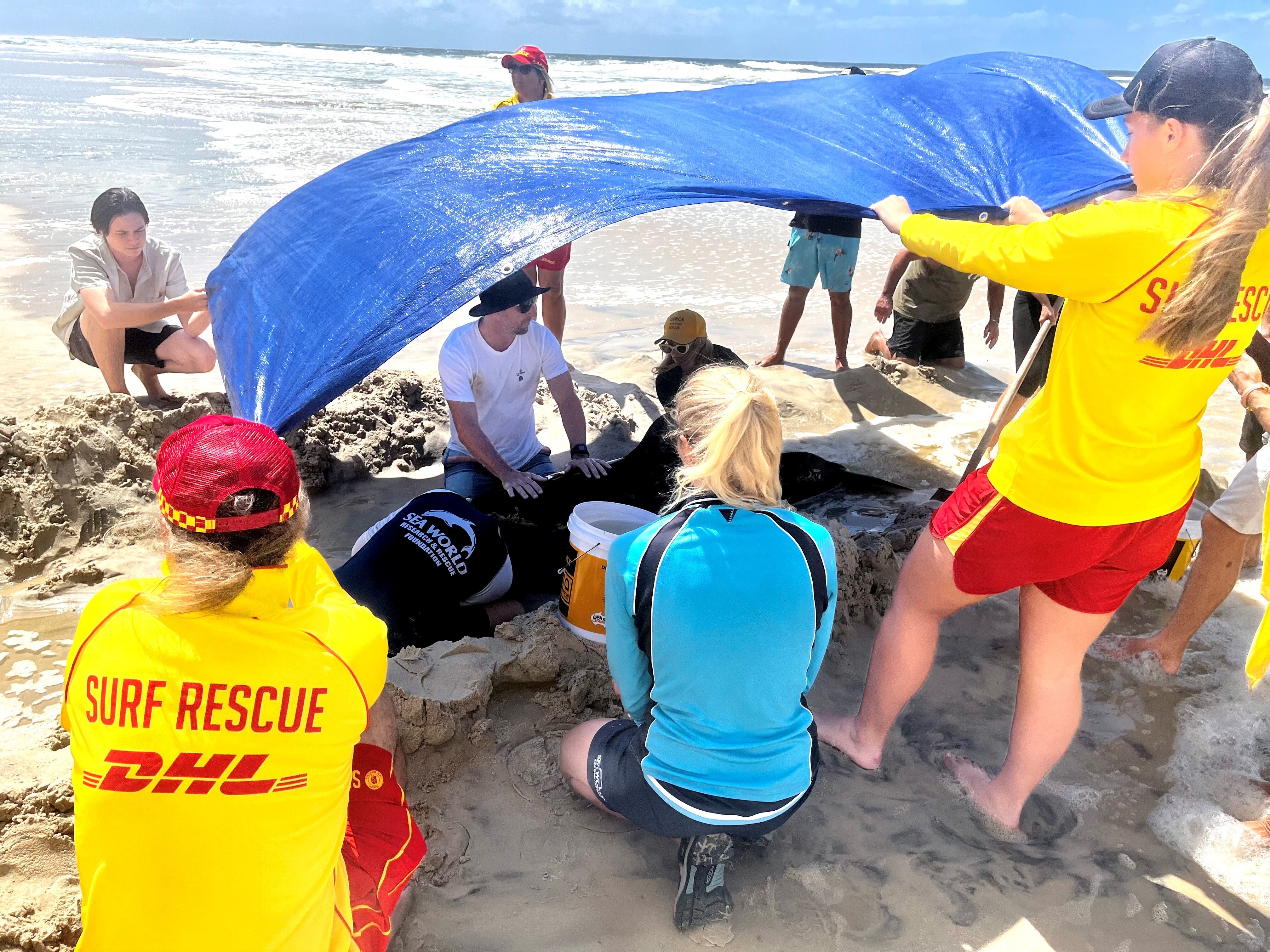 Wayne Phillips, the Head of Marine Sciences at Sea World, also answered calls for help and joined rescuers on the beach with a veterinarian and a marine rehabilitation officer.