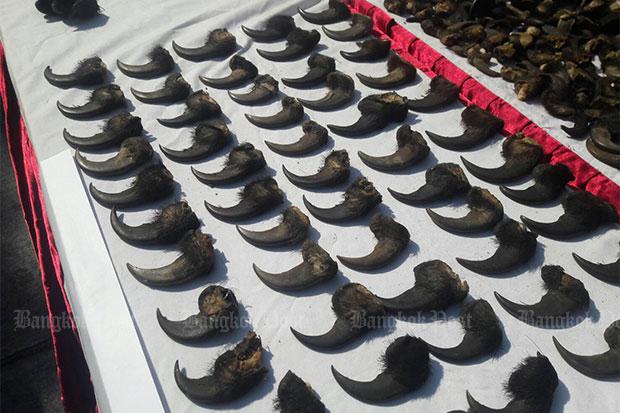 The three men were caught when police searched a Bangkok-Pakse bus at a checkpoint in Wang Noi, Ayutthaya, around 4pm on Jan 19. The bear claws were found wrapped in plastic inside a travel bag.