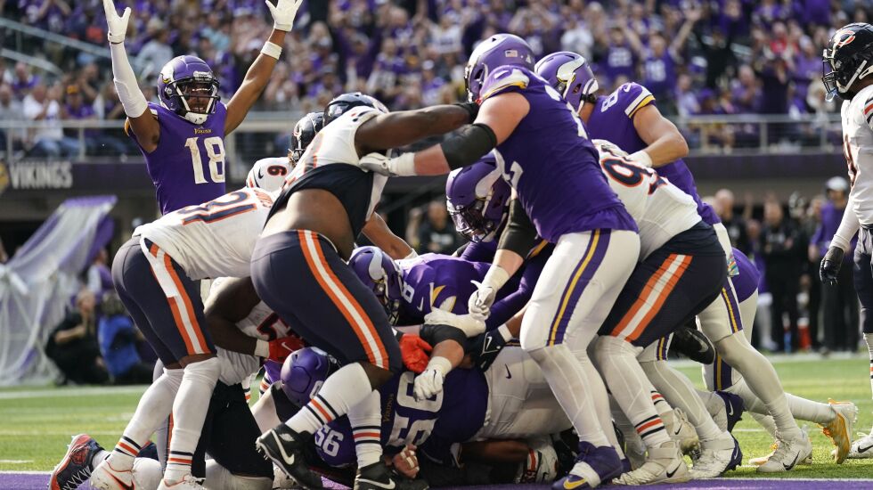 And unlike last week’s loss to the Giants, when Bears defenders lamented obvious errors that led to big gains for Daniel Jones and Saquon Barkley, there were no obvious culprits. Jones nickel-and-dimed a rejuvenated Bears defense until it just petered out in the end — with the Vikings’ interior line pushing the Bears’ defensive front backwards from on a third-and-goal from the one-and-a-half yard line to get Cousins into the end zone.