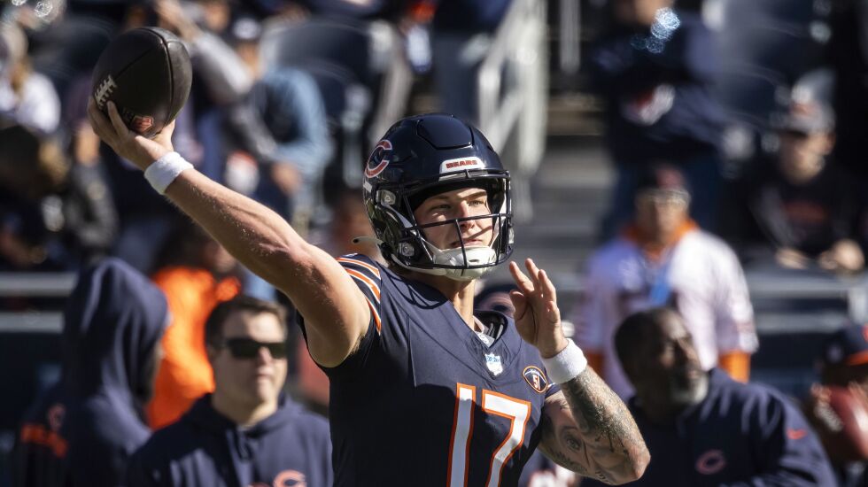 Bagent has completed 14 of 19 passes for 104 yards with no touchdowns or interceptions for an 86.3 passer rating. Running back D’Onta Foreman, the Bears’ third option at the position, finished their scoring drives with touchdown runs of three and two yards.