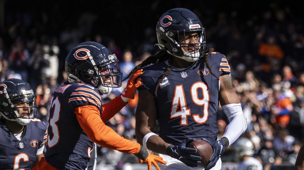 But Bagent was a 30-12 winner over the Raiders on Sunday at Soldier Field because the Bears’ defense is getting its footing after a difficult first month of the season. The defense allowed 12 points, shut down the Raiders running game (39 yards on 14 carries, 2.8 yards per carry), and held the Raiders to 235 total yards (3.9 per play) and 2-of-9 third-down conversions (22.2%). And they had three takeaways.