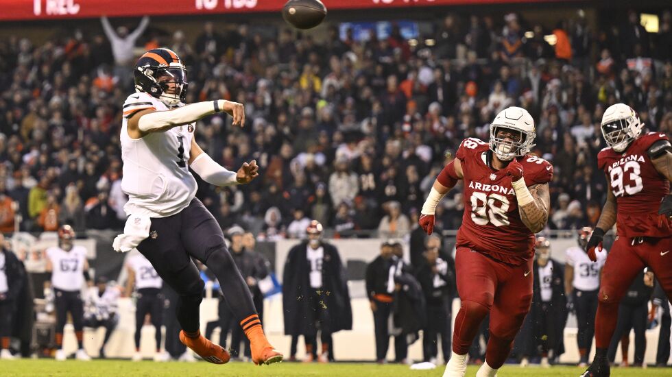 Every highly drafted rookie quarterback is charged with the same task: Don’t stay there. His trajectory has been upward, and even in a performance like he had in the Bears’ win over the Cardinals on Sunday — completing 56% of his passes for 170 yards and a 71.5 passer rating while running for 97 yards — his overall progress is clear.