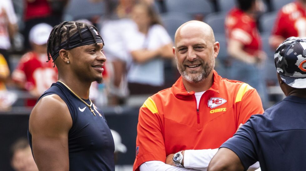 Nagy is now the Chiefs’ quarterbacks coach, standing next to Patrick Mahomes. Former Bears offensive coordinator Bill Lazor and quarterbacks coach John DeFilippo aren’t coaching in the NFL this season.