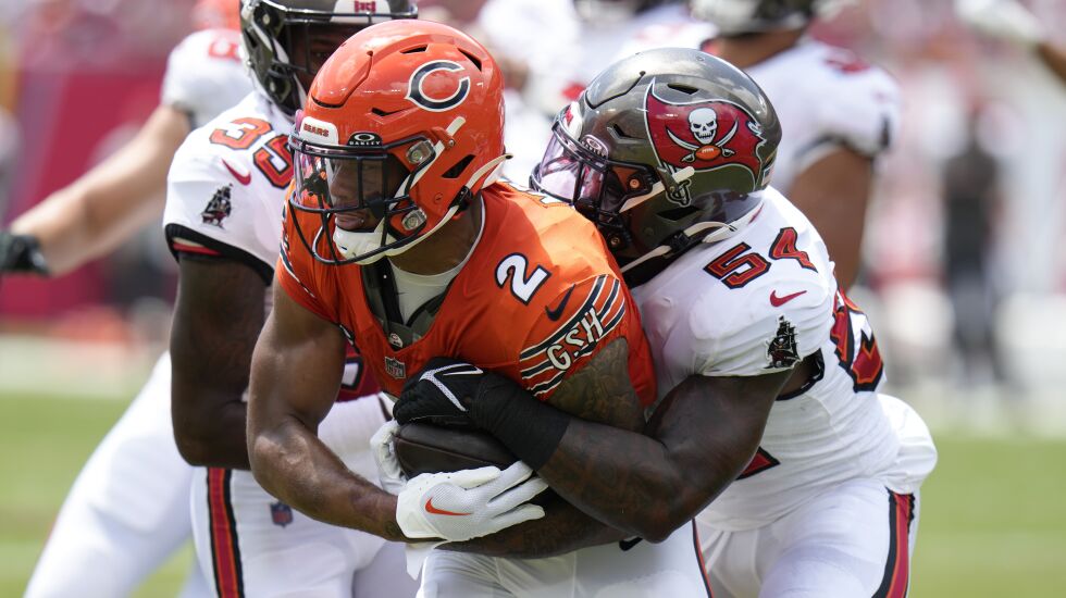 Coach Matt Eberflus defended the latter Monday, saying offensive coordinator Luke Getsy was right to call the screen from their own 6 with 2:12 to play, based on the look the Buccaneers’ defense showed them before the snap. Quarterback Justin Fields, who has the authority to change plays at the line of scrimmage, was correct to run the play as called, Eberflus said.