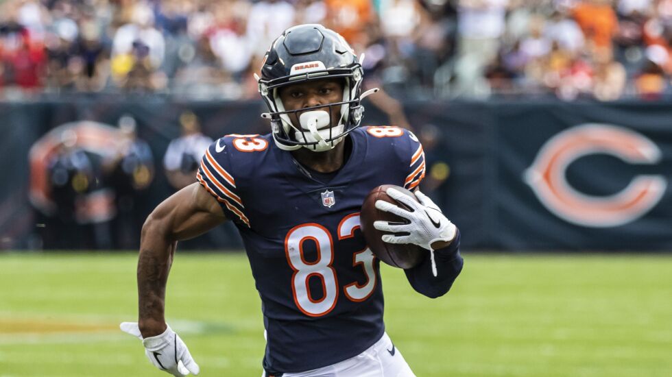 He had an opportunity, as a thin Bears receivers’ room became even more of a question mark during camp. N’Keal Harry hurt his ankle, had surgery and won’t be ready until October. Byron Pringle has missed much of this month’s practices with a quad injury. Rookie Velus Jones missed the first preseason game with an injury, while Tajae Sharpe, who was impressive against the Chiefs, sat out the second.