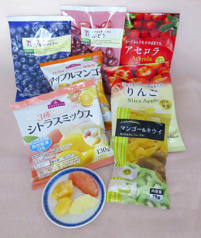 Seven & i Holdings Co. also sells frozen fruit under its Seven Premium house brand. A package of frozen blueberries and another of apple mango both sell for 200 yen.