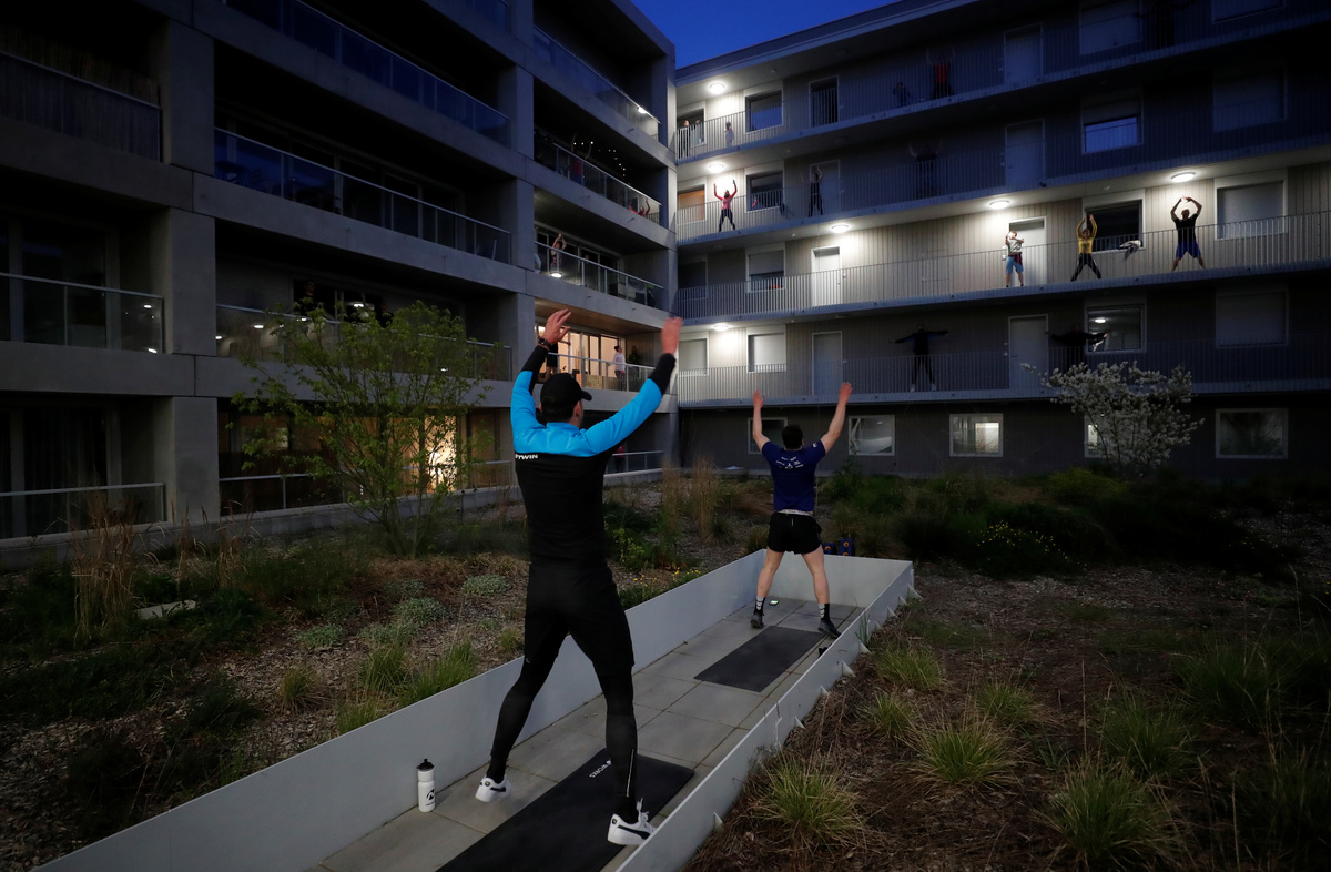 As dusk fell over Nantes in western France, dozens of residents of an apartment block came out onto their balconies for a half-hour fitness session to beat the inertia of life under lockdown while the coronavirus sweeps across the country.