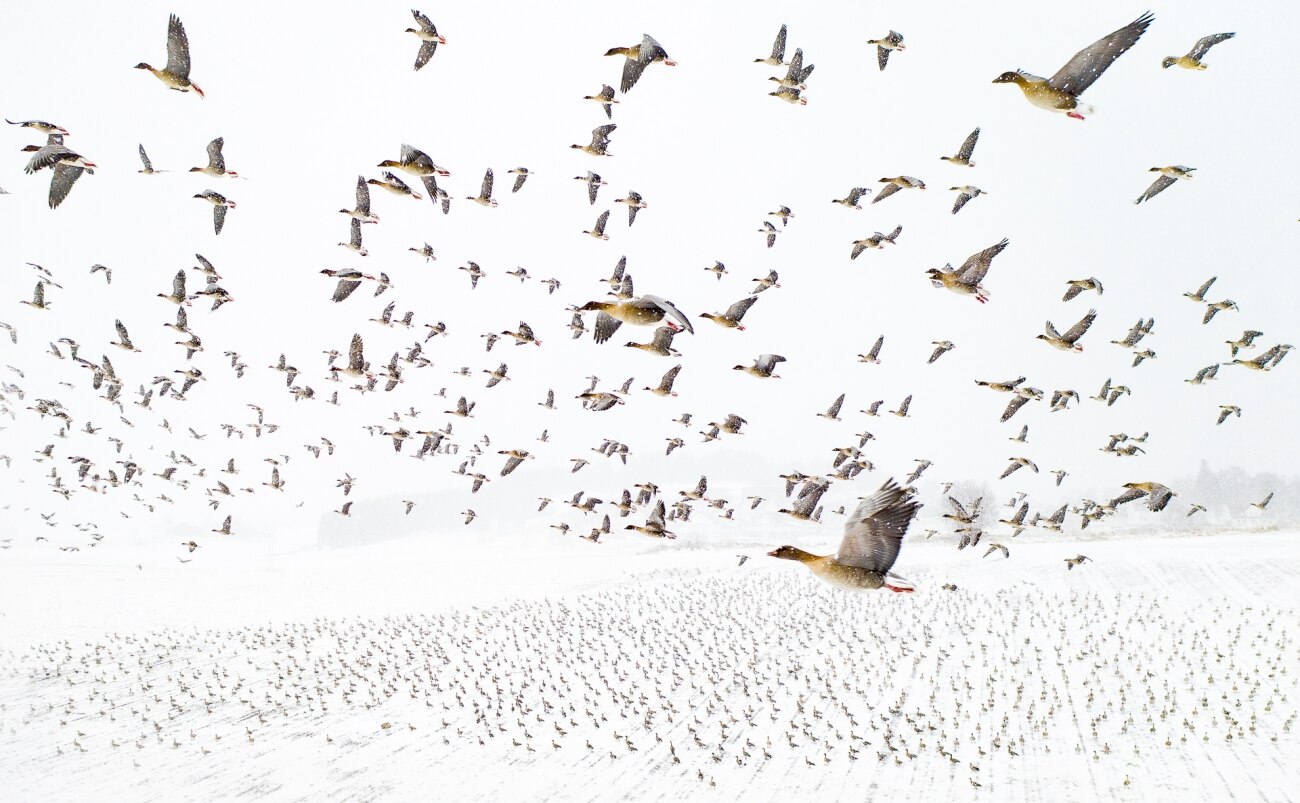 The image by Norwegian birder and photographer Terje Kolaas captured thousands of pink-footed Geese flying in spring over snow-covered grounds in central Norway. The geese, travelling to their breeding grounds on the Norwegian archipelago of Svalbard, arrive earlier every year in what may be a result of climate change.